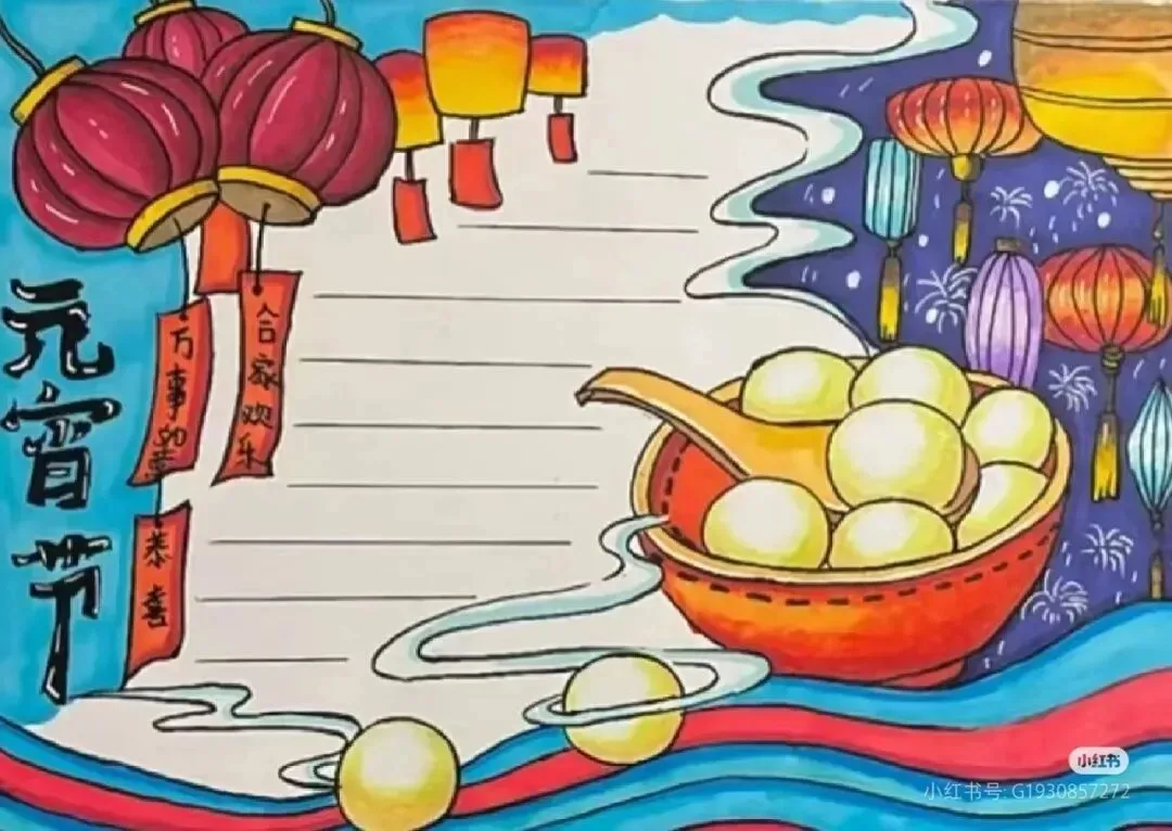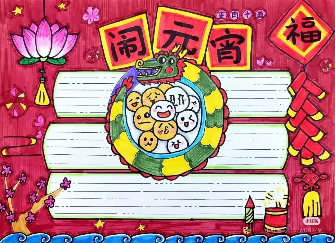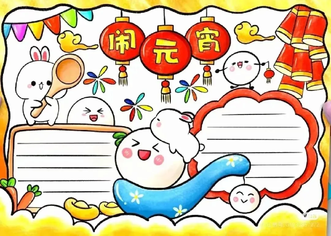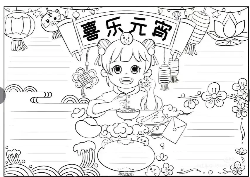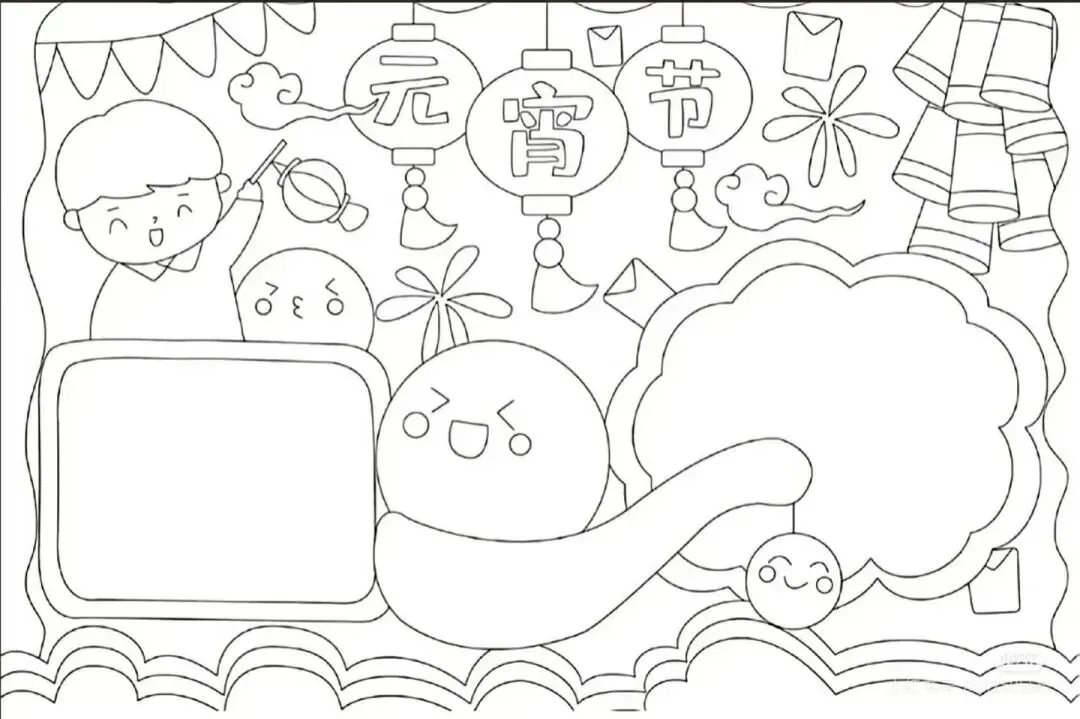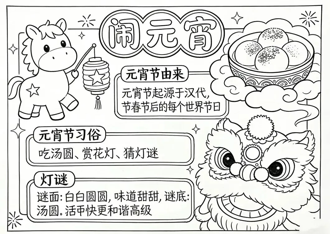 元宵节、闹元宵主题手抄报合集!含线稿可打印!
