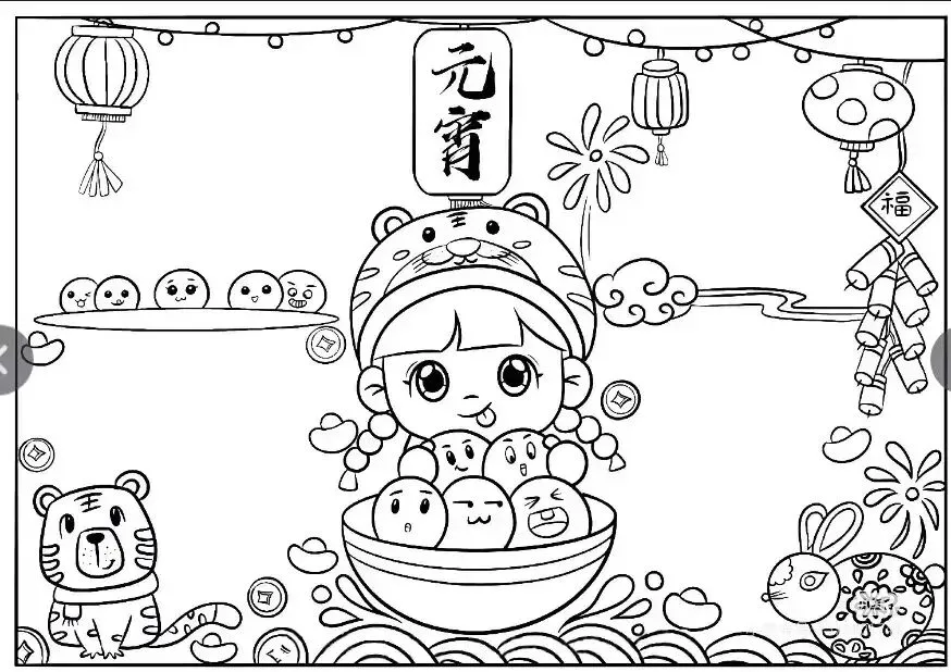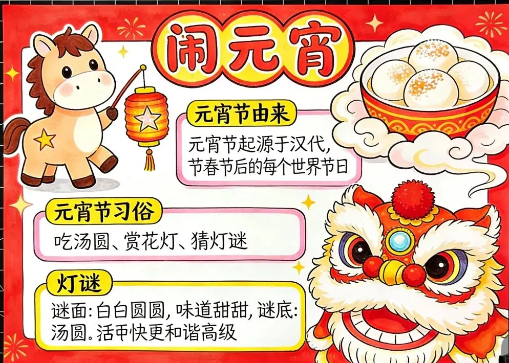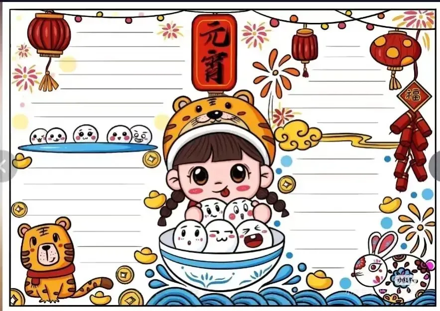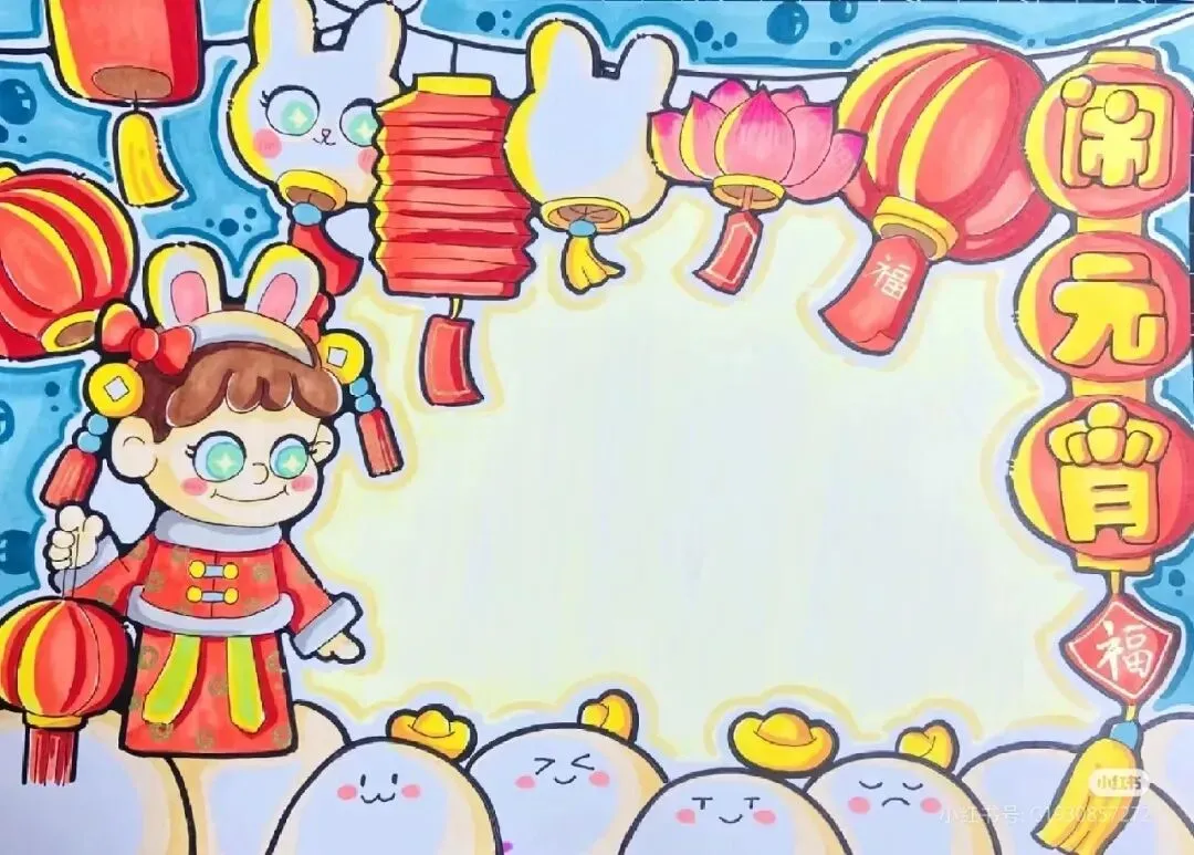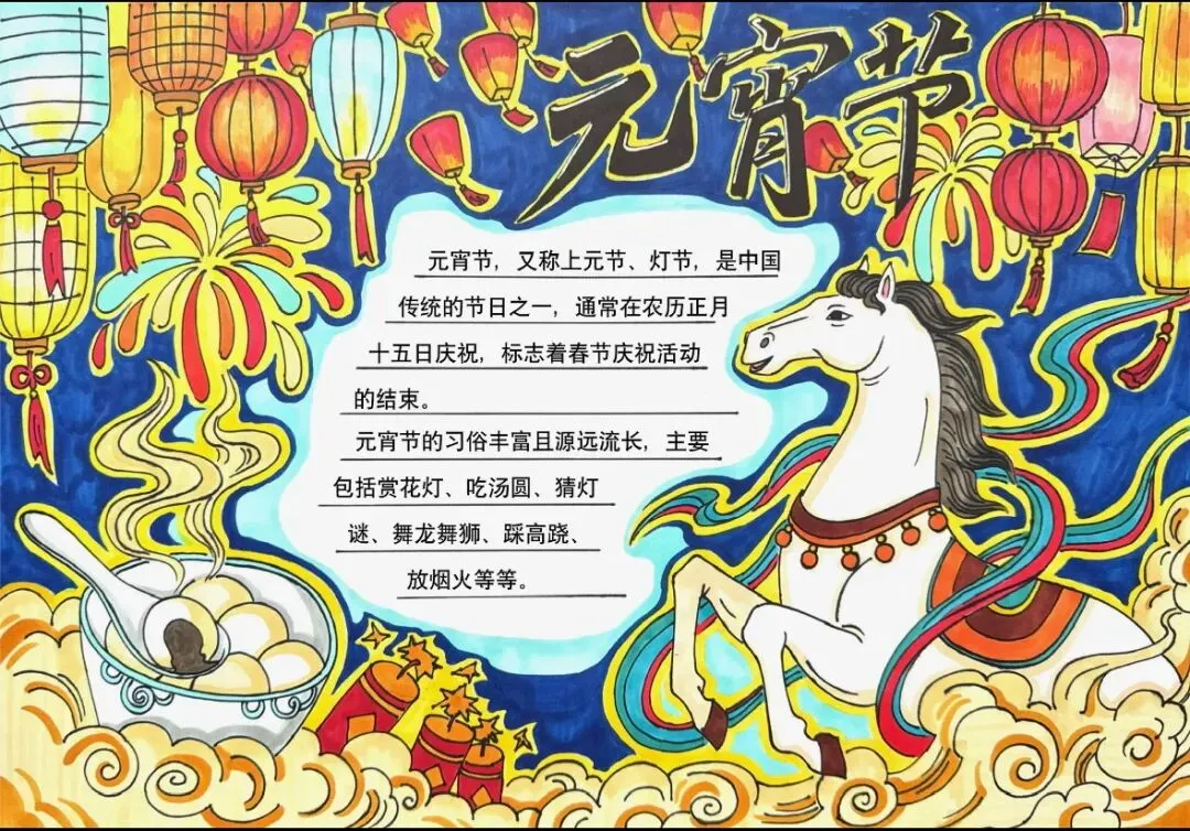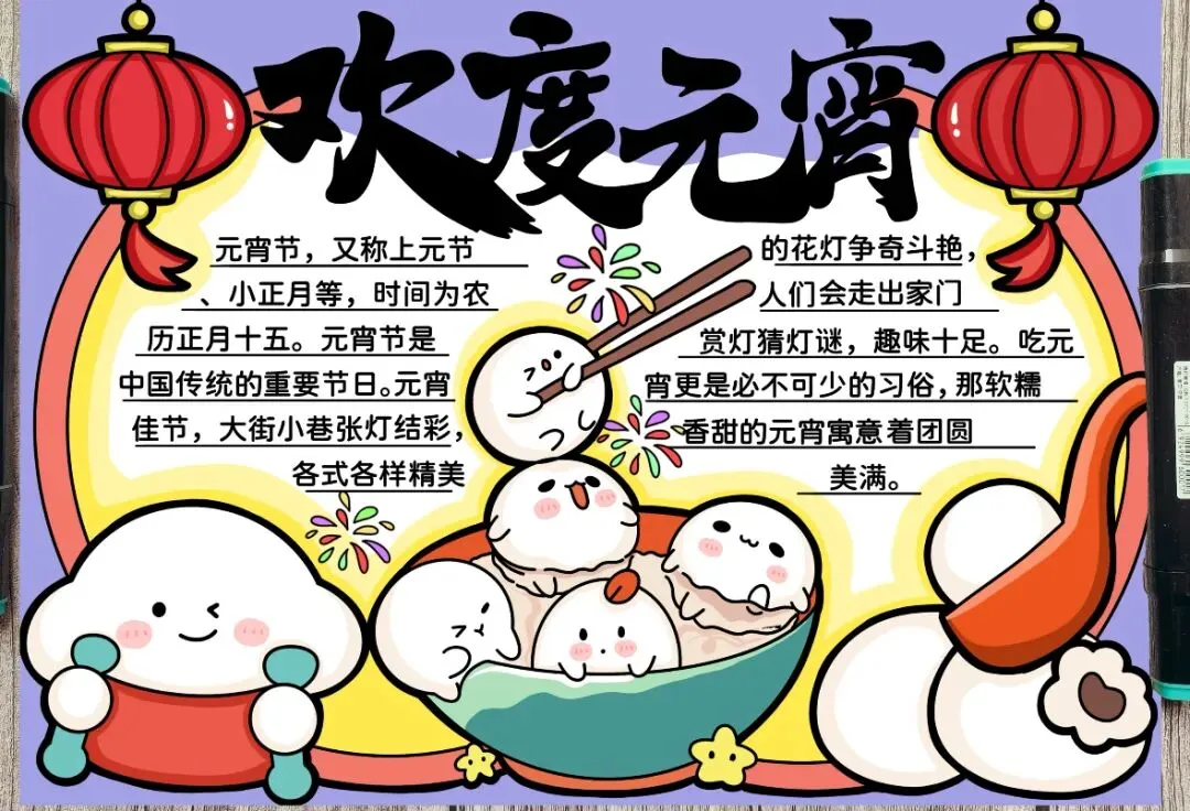 元宵节、闹元宵主题手抄报合集!含线稿可打印!