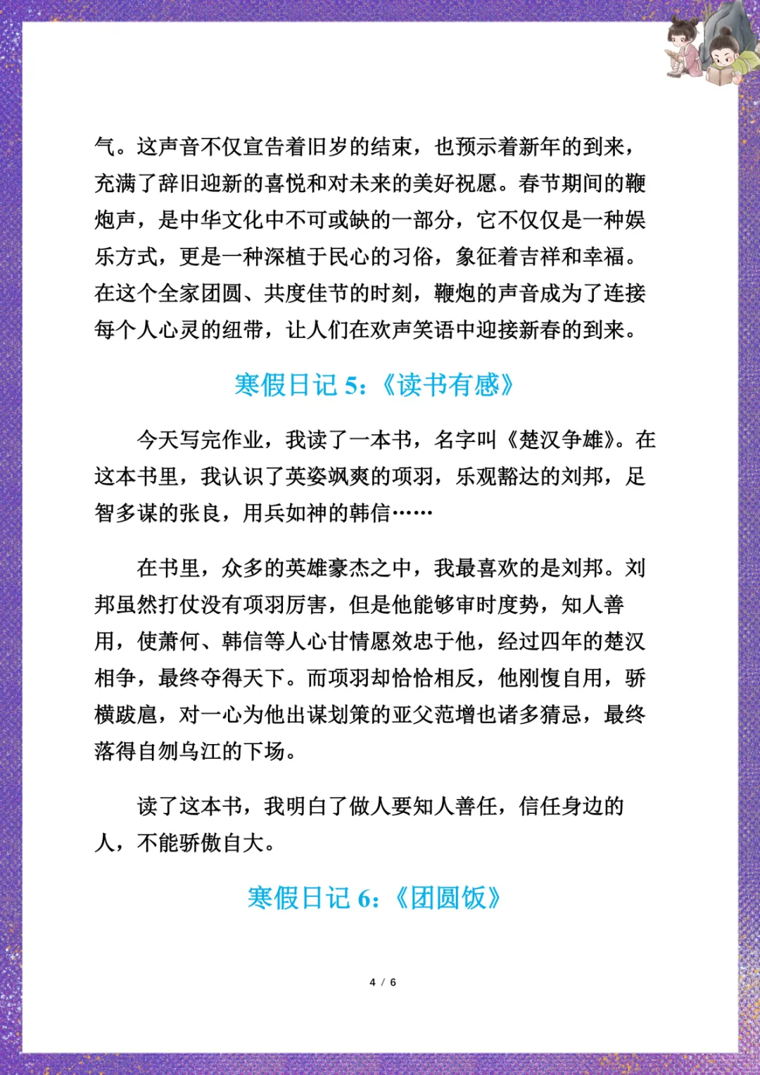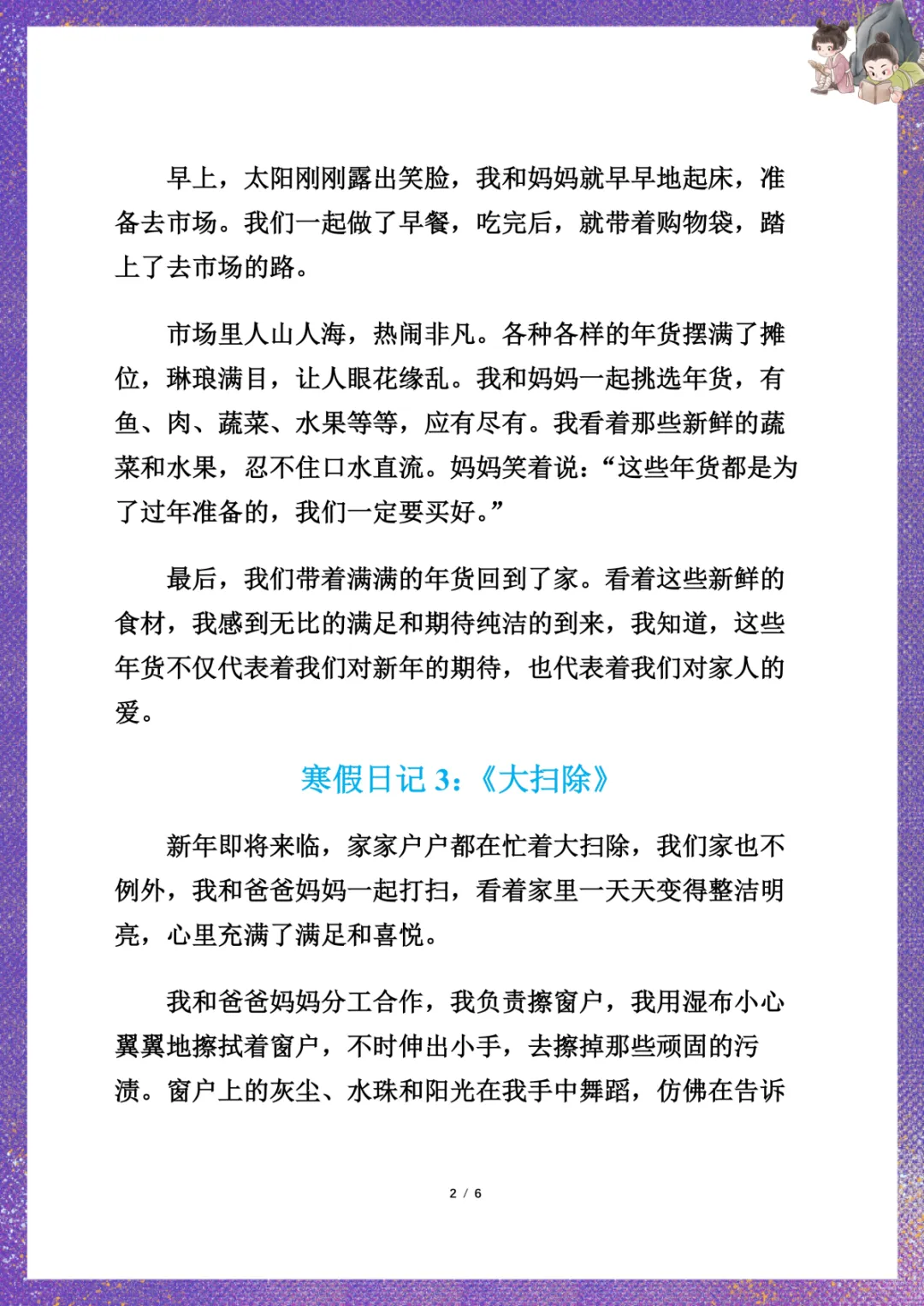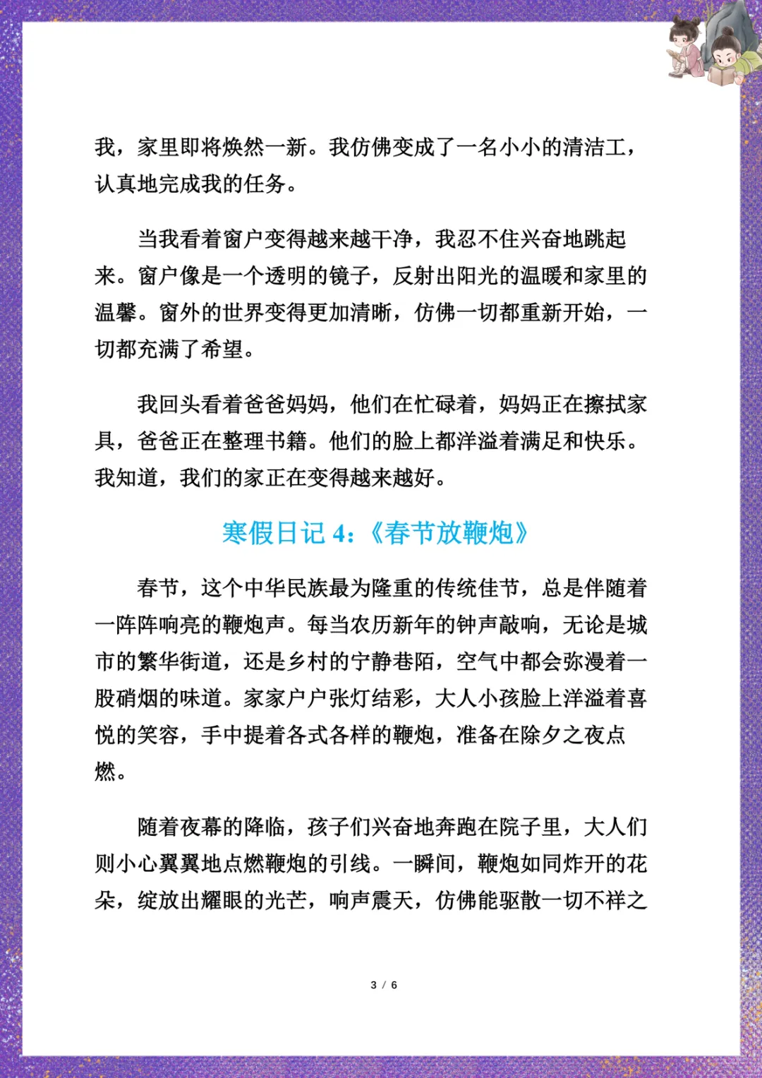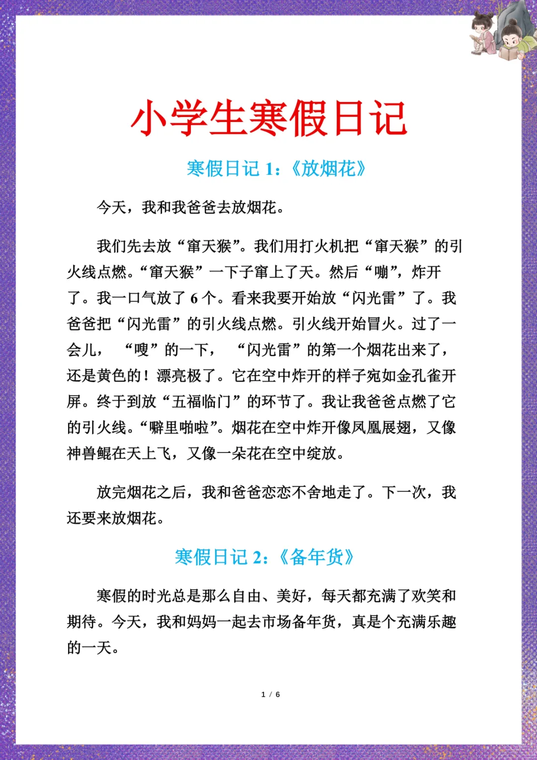 小学生寒假日记7篇 电子版可下载打印