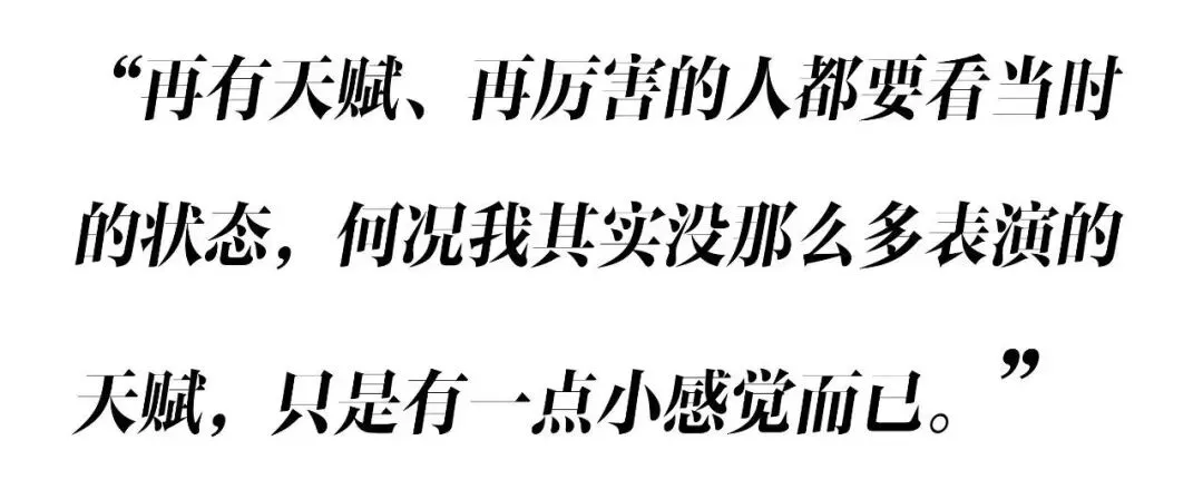 周冬雨也曾着急,希望自己身为演员的部分可以早一些成长为一个“女人”。“其实急也没用,我也没想证明给谁看——但我会尽力去做好,这总比干着急管用。”