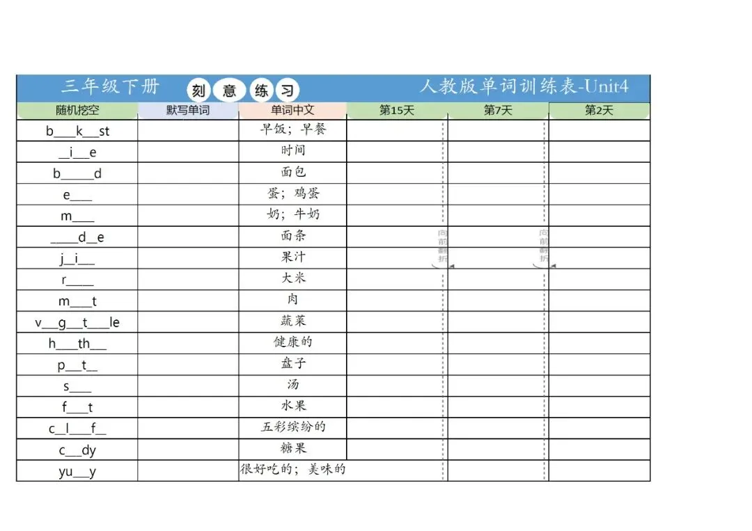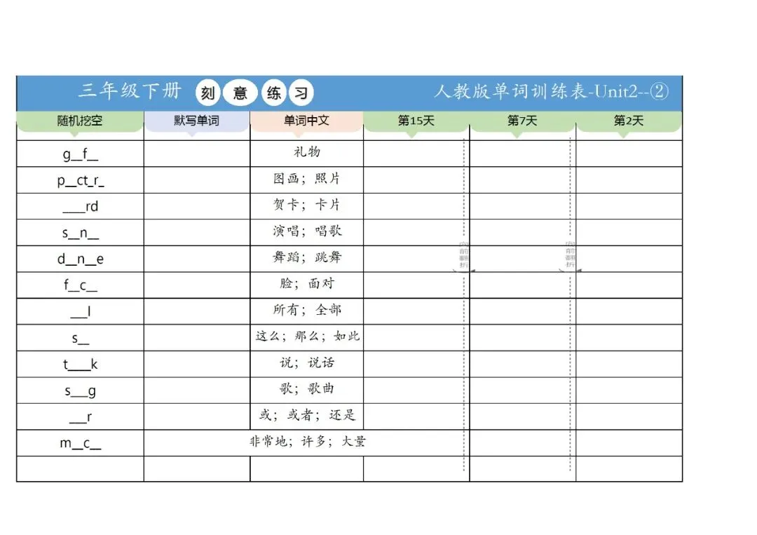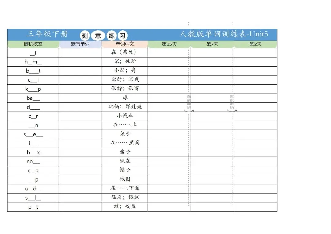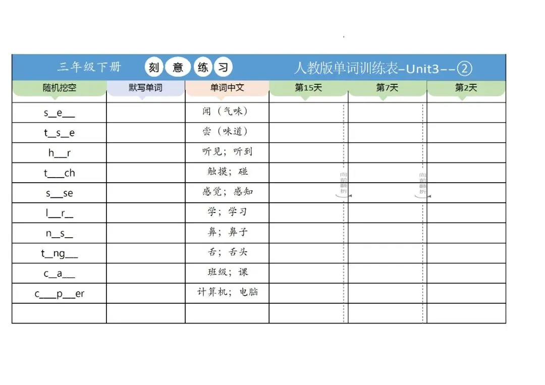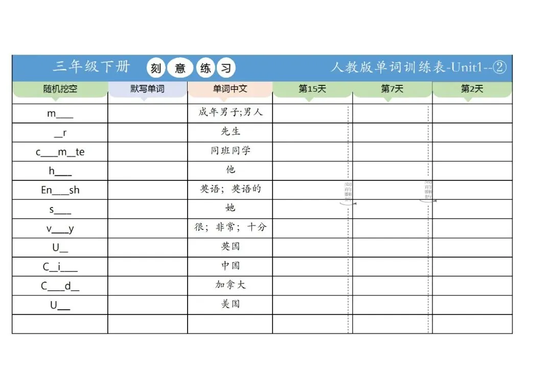 新三年级英语下册全册单词训练表,免费下载