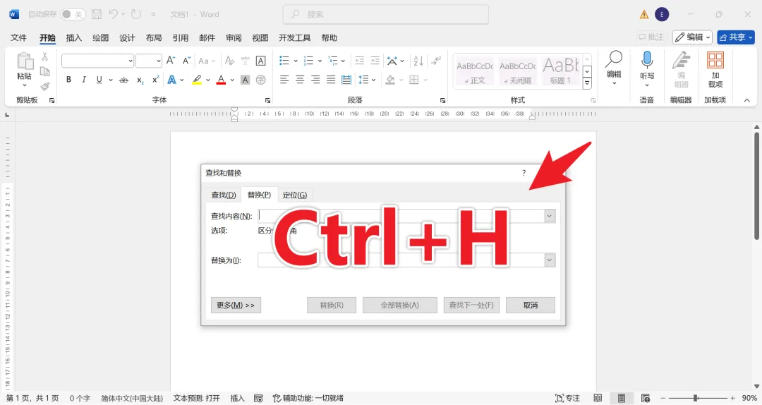 为了解决这个问题,需要把文档中的换行符替换成段落标记。按下Ctrl+H组合键,或者依次点击“开始”选项卡、“编辑”组中的“替换”按钮,打开“查找和替换”对话框。