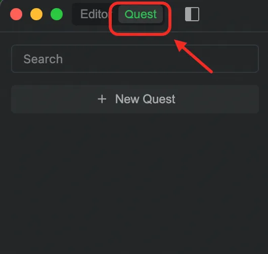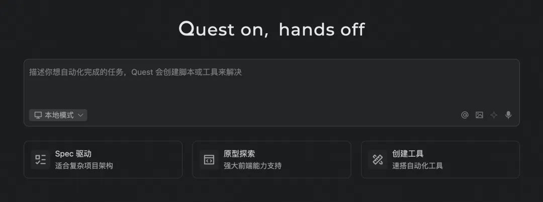 打开 Qoder,从左上角选择 Quest 模式,