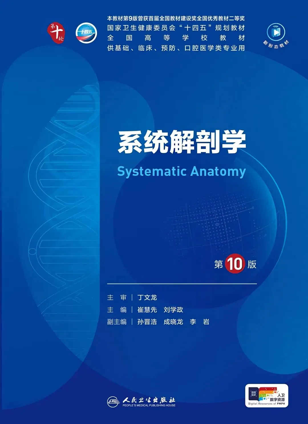 《系统解剖学(第10版)》由崔慧先、刘学政主编,于2024年出版的医学本科教材,属于普通高等教育国家级规划教材第十轮修订版本。该书作为临床医学专业核心教材,在前版基础上重构知识体系,旨在适应现代医学教育需求,强化解剖学科的实践性与人文融合。