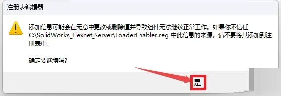 5、返回“SolidWorks_Flexnet_Server”文件夹,双击”LoaderEnabler.reg“注册表文件