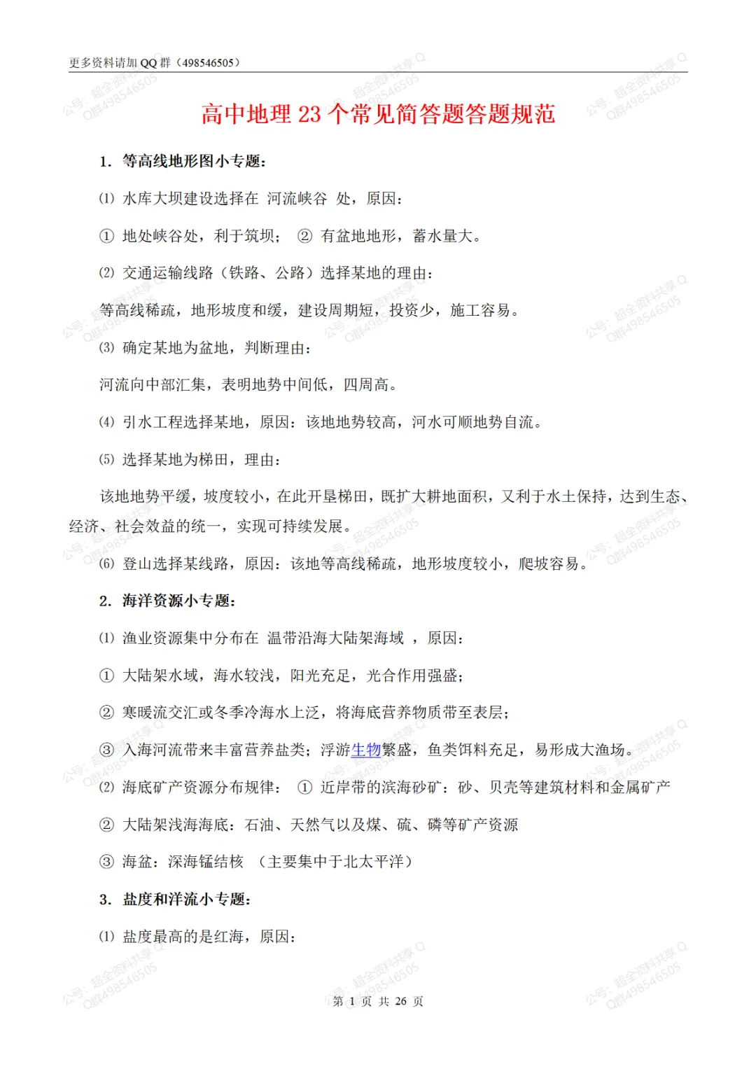高中地理23个常见简答题答题规范(pdf分享) 【最新试卷】 2024北京东城高三【一模】全科试题及答案(pdf分享) 2024北京西城高三【一模】全科试题及答案(pdf分享) 2024北京海淀高三【一模】全科试题及答案(pdf分享) 2025北京海淀区高一(上)期末卷合集及答案(pdf分享) 2025北京海淀区高二(上)期末卷合集及答案(pdf分享) 2025北京海淀区高三(上)期末卷合集及答案(pdf分享) 2025北京东城区高一(上)期末卷合集及答案(pdf分享) 2025北京东城区高二(上)期末卷合集及答案(pdf分享) 2025北京东城区高三(上)期末卷合集及答案(pdf分享) 2025北京朝阳区高一(上)期末卷合集及答案(pdf分享) 2025北京朝阳区高二(上)期末卷合集及答案(pdf分享) 2025北京朝阳区高三(上)期末卷合集及答案(pdf分享) 2025届高三八省八校联考(全九科)试题及答案(pdf分享) 看文末有获取打印版方式 (完整版26页,部分展示) 上文和下面资料在QQ群498546505下载 【高中地理知识总结】 1.人教版高中地理必修1知识点(pdf分享) 2.人教版高中地理必修2知识点(pdf分享) 3.人教版高中地理必修3知识点(pdf分享) 4.人教版高中地理选修3《旅游地理》知识点(pdf分享) 5.人教版高中地理选修6《环境保护》知识点(pdf分享) 6.高中地理简答题规范系列(pdf分享) 7.高中地理基础知识复习提纲(pdf分享) 8.中国地理填图集(pdf分享) 9.高中地理全册必背章节知识清单(人教版2019必修第一册)(pdf分享) 10.高考地理核心知识点思维导图(pdf分享) 11.世界地理重要区域地图+知识点整理(pdf分享) 12.高中地理一轮复习课堂学习笔记(pdf分享) 13.高中地理易考点、易错点整理(pdf分享) 14.高中地理一轮复习高考地理考点及主干知识687条总结(pdf分享) 15.高中地理必修一地理知识点总结(人教版2019)(pdf分享) 16.高中地理必修一、二、三,常考易错易混知识点梳理(pdf分享) 17.高中地理易错知识点精析总结(pdf分享) 18.高中地理计算题专题(pdf分享) 19.高考地理必考的世界地理知识点汇总(pdf分享) 20.高中地理必修二地理知识点总结(人教版2019)(pdf分享) 21.人教版高中地理选修1知识点(pdf分享) 22.高中地理97个高考地理必背知识点(pdf分享) 23.高考地理必考的世界地理知识点汇总(pdf分享) 24.高中地理干货高三地理复习简答题答题模版(pdf分享) 25.高中地理112组地理概念辨析,收藏从高一用到高三!(pdf分享) 26.(超详)高中地理知识点归纳汇总(pdf分享) 27.高考地理97个必背知识点总结(pdf分享) 28.新教材高中地理必修一知识点超全总结(pdf分享) 29.高中地理必修三区域地理核心知识提炼(pdf分享) 30.高中地理13个区位因素答题模板(pdf分享) 31.高中地理三年常考《世界地理》名词解释(pdf分享) 32.高考地理必背18种大题(pdf分享) 33.高考地理干货高中地理名词及概念(pdf分享) 34.高中地理考试简答题万能答题模版(pdf分享) 35.高中地理答题模板地理大题万能答案(pdf分享) 36.高中地理(新课标版)大题答题模板及必修一、必修二、必修三知识点总结(pdf分享) 37.高中地理基础知识汇编(pdf分享) 38.湘教版高中地理必修2知识点梳理(pdf分享) 39.高考地理必考的基础知识汇总(pdf分享) 40.高中地理新教材必修一知识点总结(pdf分享) 41.高中地理新教材必修二知识点总结(pdf分享) 42.高中地理新教材选择性必修一知识点总结(pdf分享) 43.高中地理新教材选择性必修二知识点总结(pdf分享) 44.高中地理新教材选择性必修三知识点总结(pdf分享) 45.高考地理必考的基础知识汇总(pdf分享) 46.高中地理(新课标版)大题答题模板及必修123知识点总结(pdf分享) 47.高中地理口诀公式大全(pdf分享) 48.高中区域地理知识点终极总结(pdf分享) 49.高三尖子生的地理笔记(pdf分享) 50.高一地理各章节必备知识汇总第1-2章(pdf分享) 51.高中地理易错知识点精析总结(pdf分享) 52.湘教版高中地理必修一知识点总结(pdf分享) 53.新教材高中地理人教版(2019)必修第一册知识点梳理(pdf分享) 54.新教材高中地理人教版(2019)必修第二册知识点梳理(pdf分享) 55.新教材高中地理人教版(2019)选修1《自然地理基础》知识梳理(pdf分享) 56.新教材高中地理人教版(2019)选修2《区域发展》知识梳理(pdf分享) 57.新教材高中地理人教版(2019)选修3《资源、环境与安全》知识梳理(pdf分享) 58.高考地理大题答题模板(pdf分享) 59.北京市高考地理知识点梳理(pdf分享) 60.高中地理新教材知识点思维导图梳理(pdf分享) 61.2023高中地理专项训练100套(含答案解析)(pdf分享) 62.高中地理答题模板地理大题万能答案(pdf分享) 63.高中地理必备知识清单(pdf分享) 64.中图版高一地理必修1知识点梳理(pdf分享) 65.新教材中图版高中地理高一年级必修2知识点梳理(pdf分享) 66.新教材湘教版高中地理高一地理必修第二册知识点梳理(pdf分享) 67.新教材中图版高中地理高一地理必修第二册知识点梳理(pdf分享) 68.高中地理必备思维导图(pdf分享) 69.通用版高考地理读图技巧系列(pdf分享) 70.新教材湘教版高一地理必修第一册知识点汇总(pdf分享) 71.新人教版高考地理16个专题复习大全(pdf分享) 72.新教材高中地理人教版高一地理必修第一册知识点总结复习归纳(pdf分享) 73.新教材高中地理人教版高一地理必修第二册知识点总结复习归纳(pdf分享) 74.新教材高中地理人教版高二地理选择性必修1 自然地理基础 知识点总结复习归纳(pdf分享) 75.新教材高中地理人教版高二地理选择性必修2 区域发展 知识点总结复习归