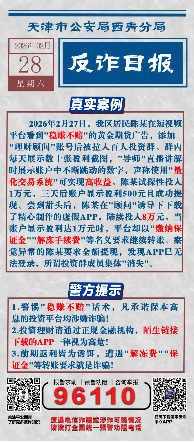 【反诈日报】投资8万后APP消失,这种“稳赚不赔”要警惕!