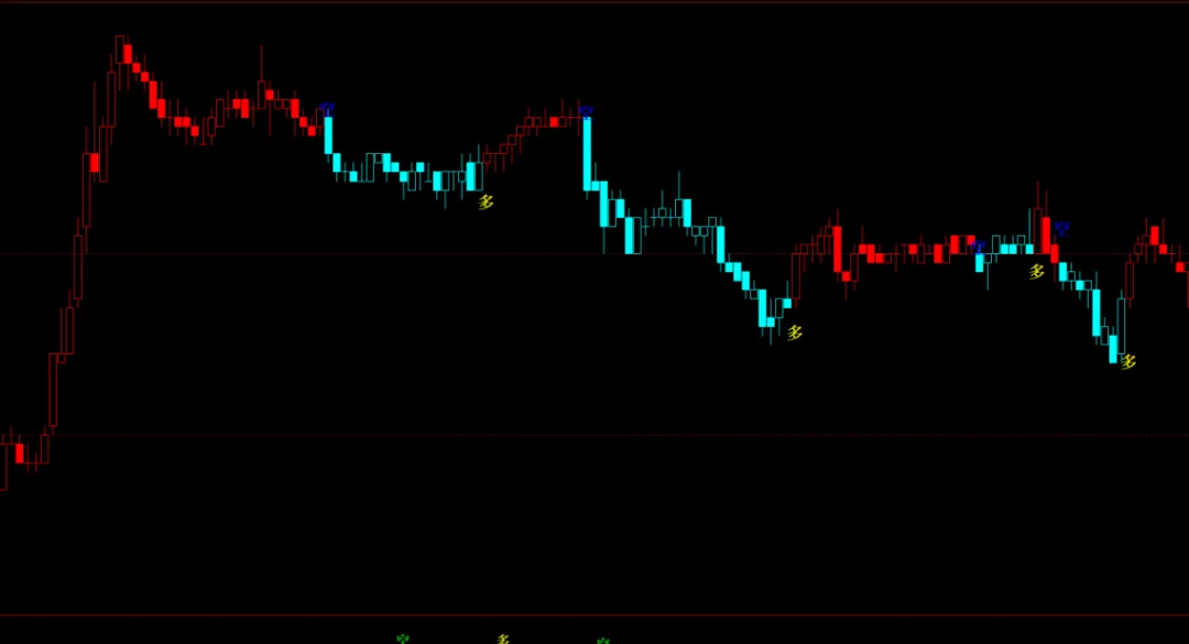 DRAWTEXT(CROSS(0,TNY),NN,’多’),COLORYELLOW,FONTSIZE20,ALIGN1,VALIGN0;