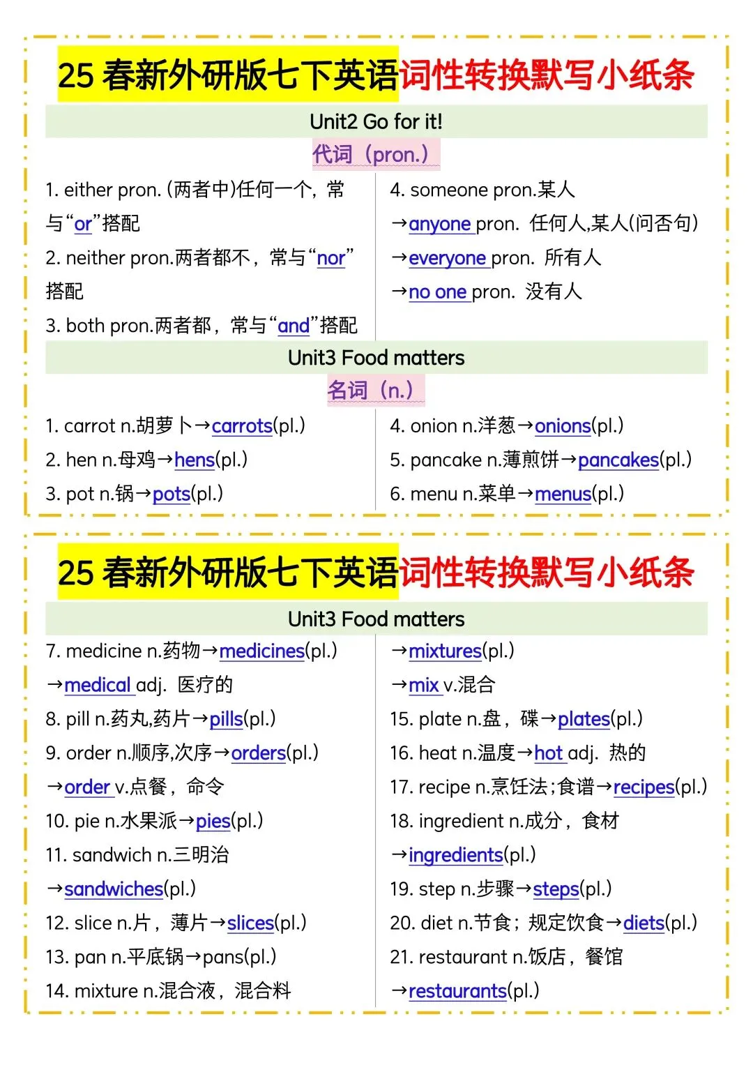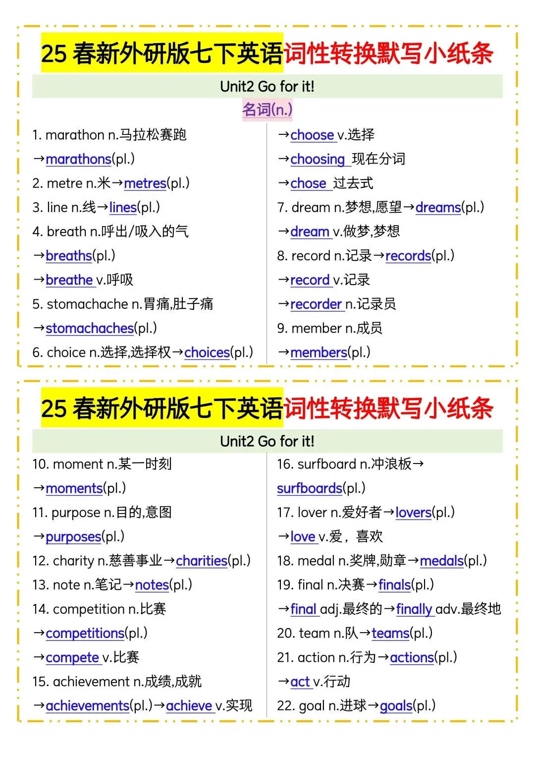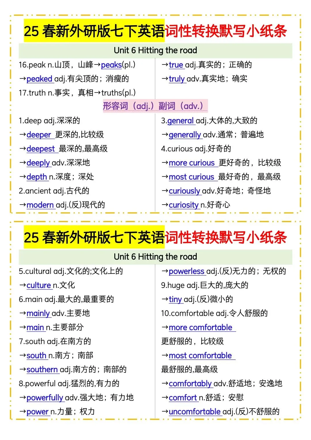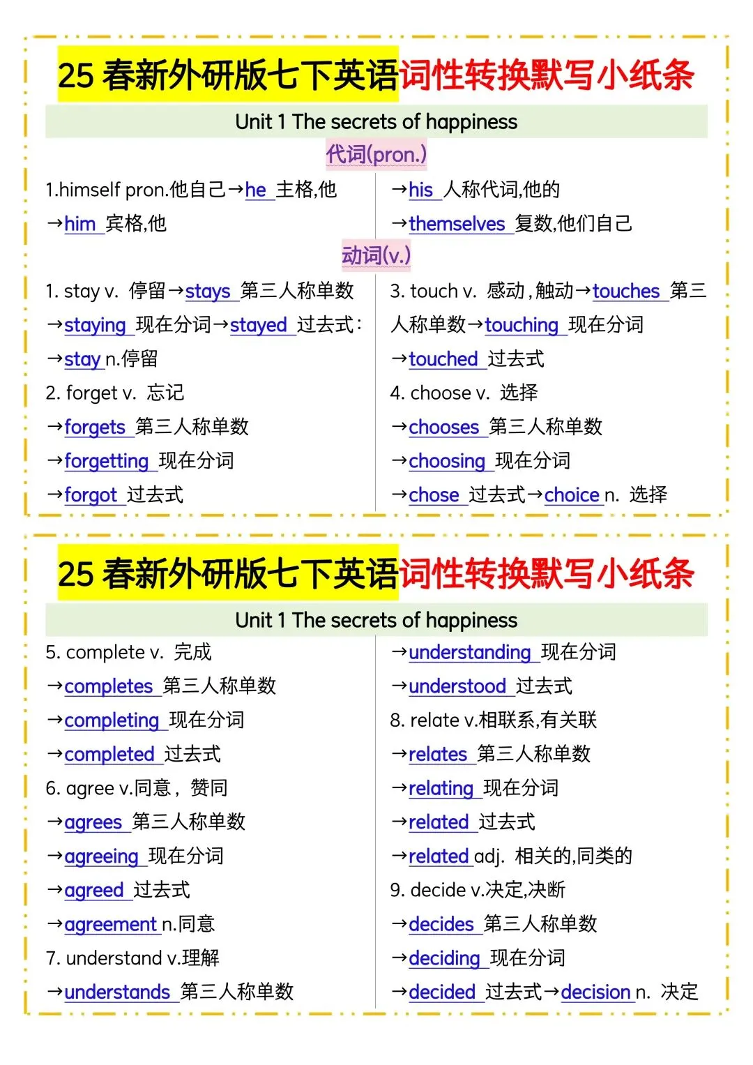 初一七年级下册外研版英语词性转换背诵默写小纸条共20页丨完整高清可打印(227)