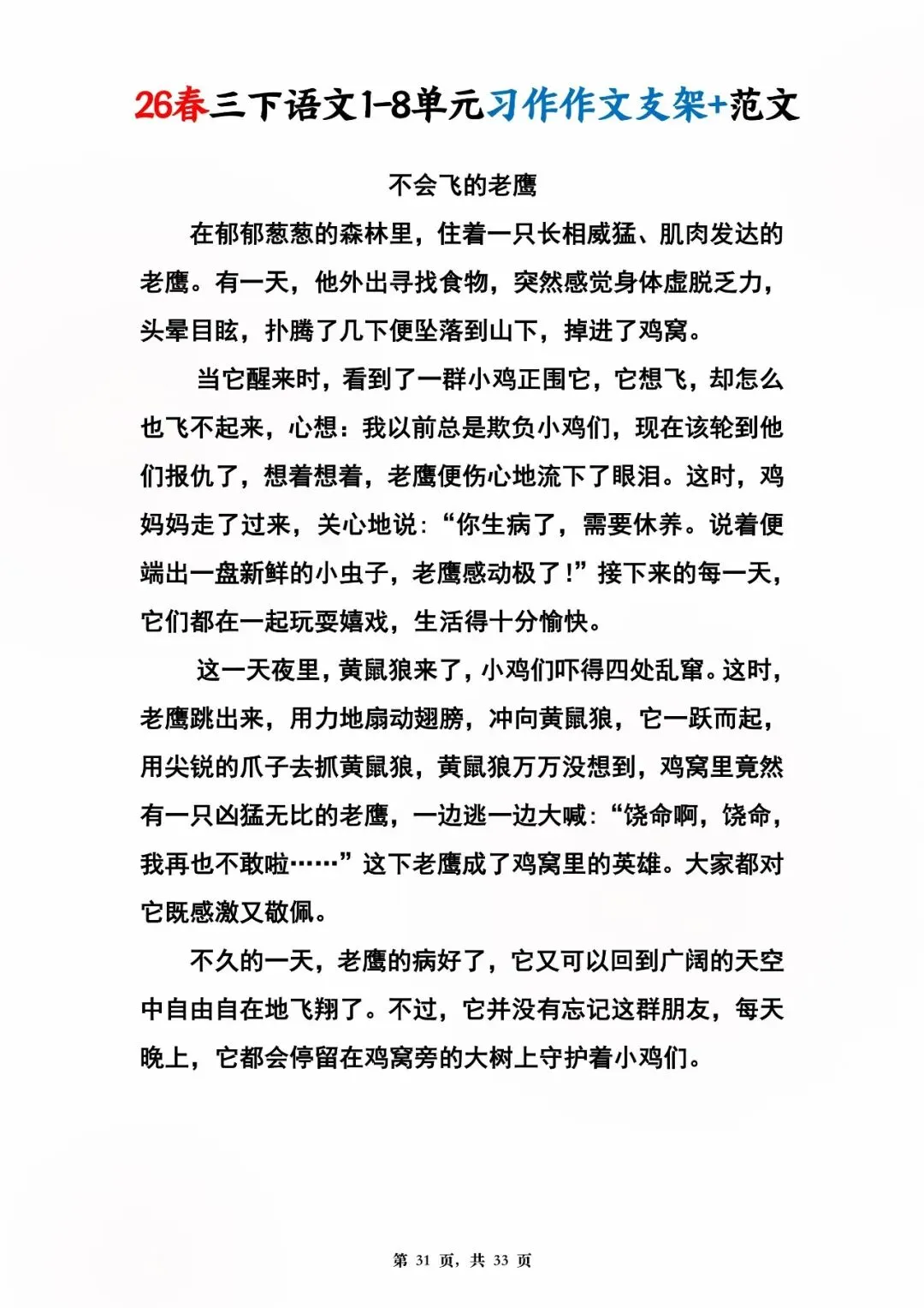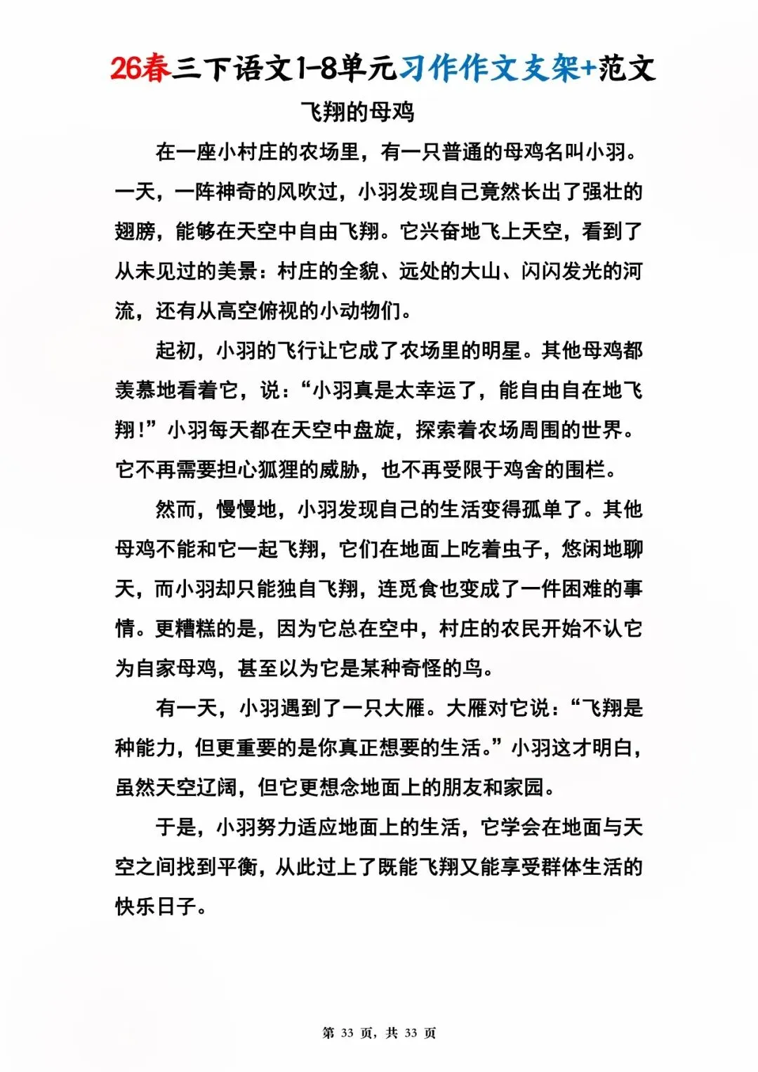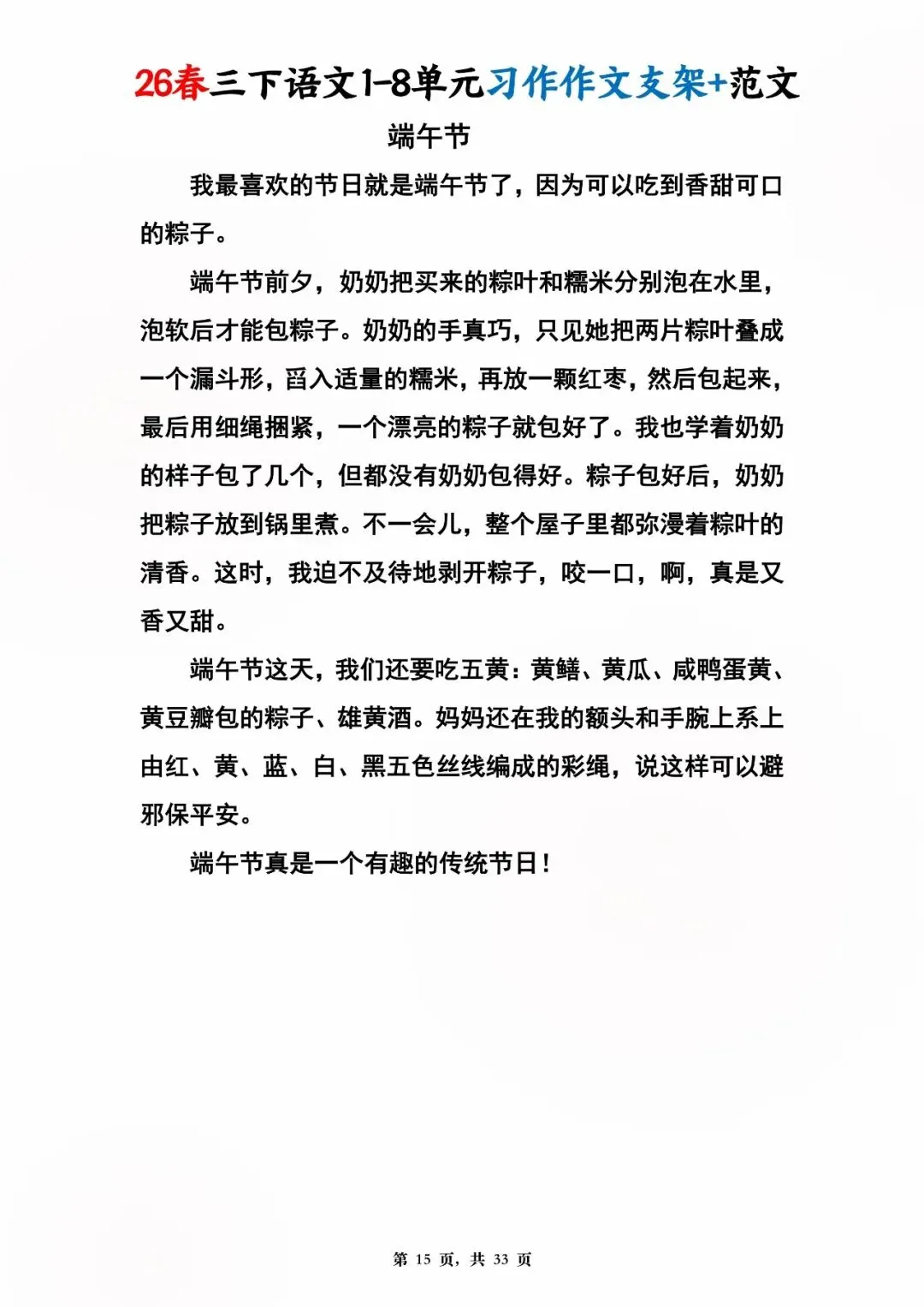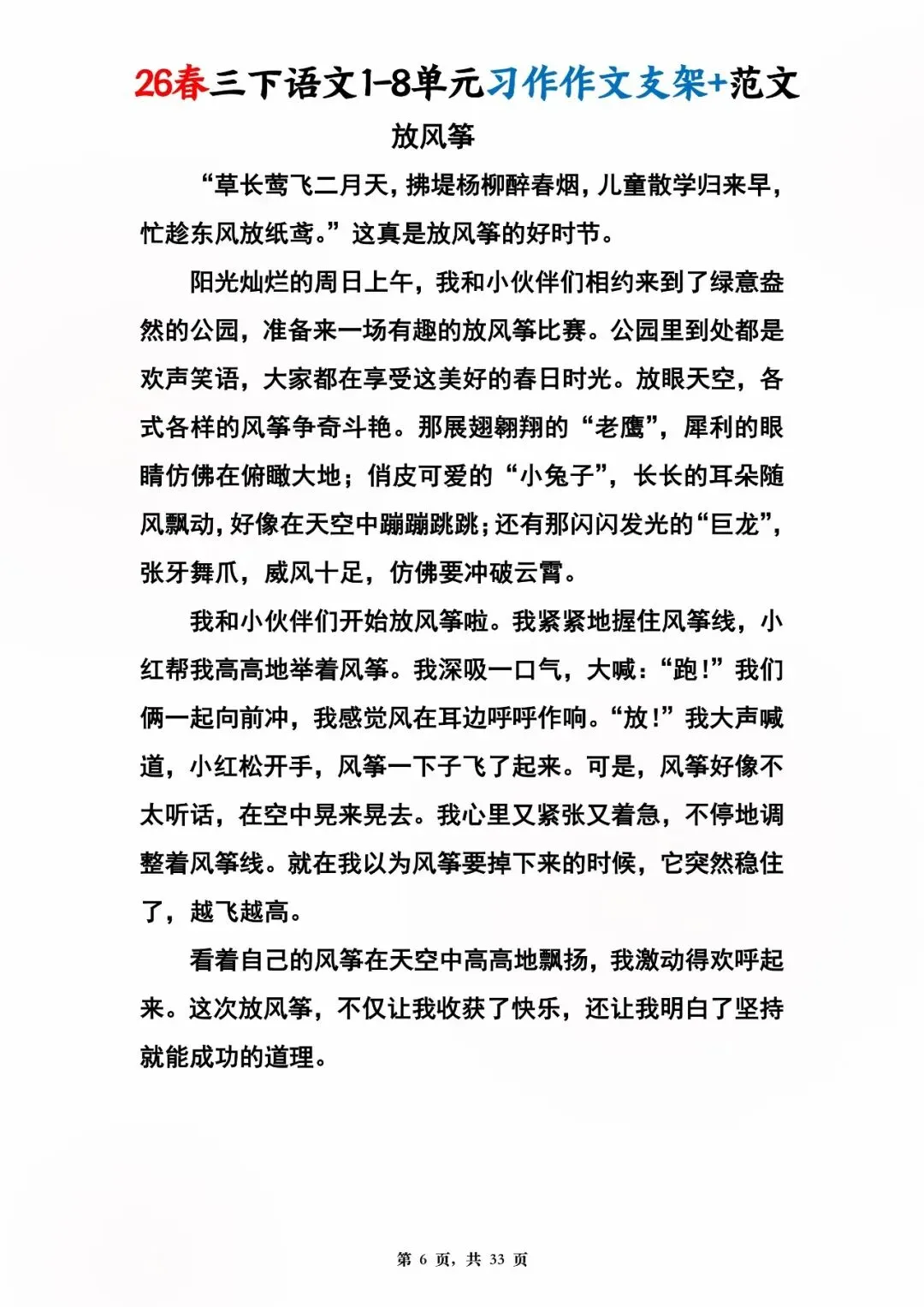 26年春人教版三年级下册语文1-8单元同步写作范文,共33页,电子版可下载,这份三下语文单元习作范文,包含了我的植物朋友、我做了一项小实验、中华传统节日、奇妙的想象、国宝大熊猫等单元的作文支架及优秀习作范文,帮助孩子启发写作思路,再也不会为三年级下册的写作内容犯愁了。教育不是填鸭,而是给方法、给支架、给信心!#三年级语文 #单元习作 #作文范文 #小学写作 #人教版语文 #家长收藏 #学习资料