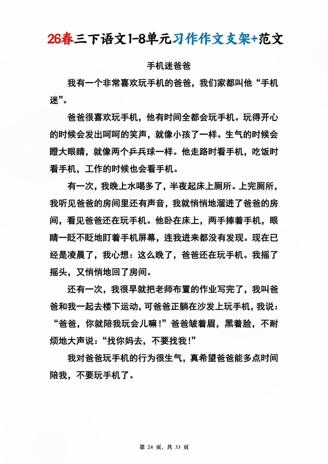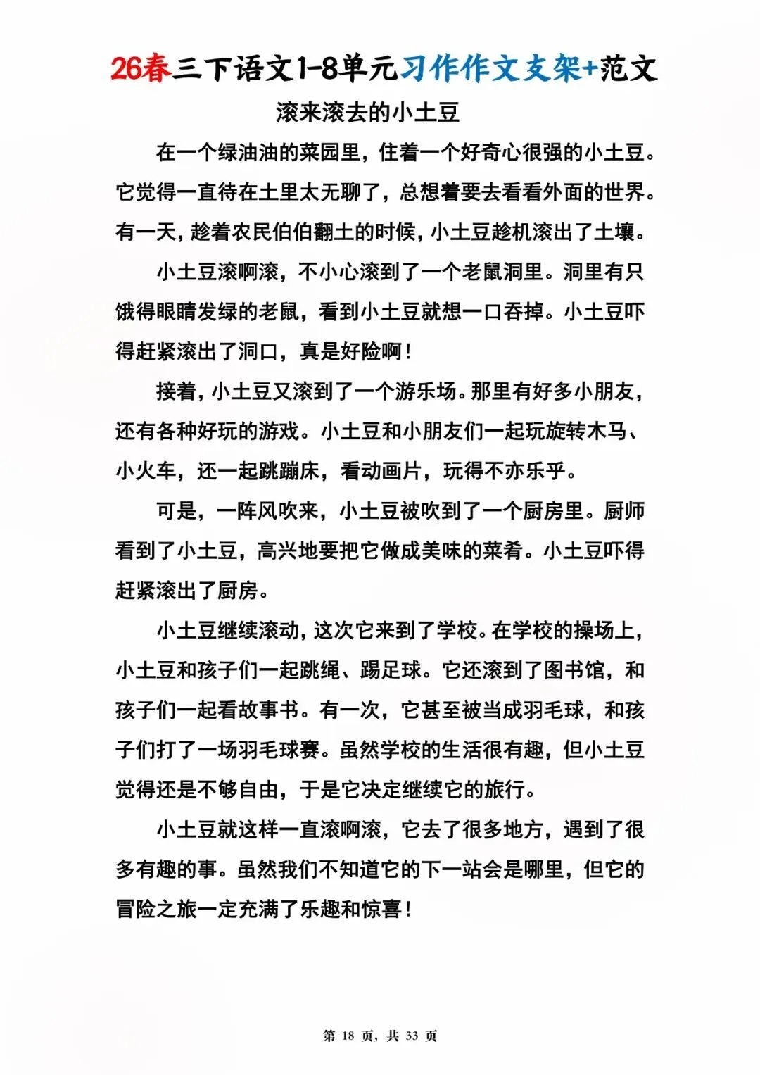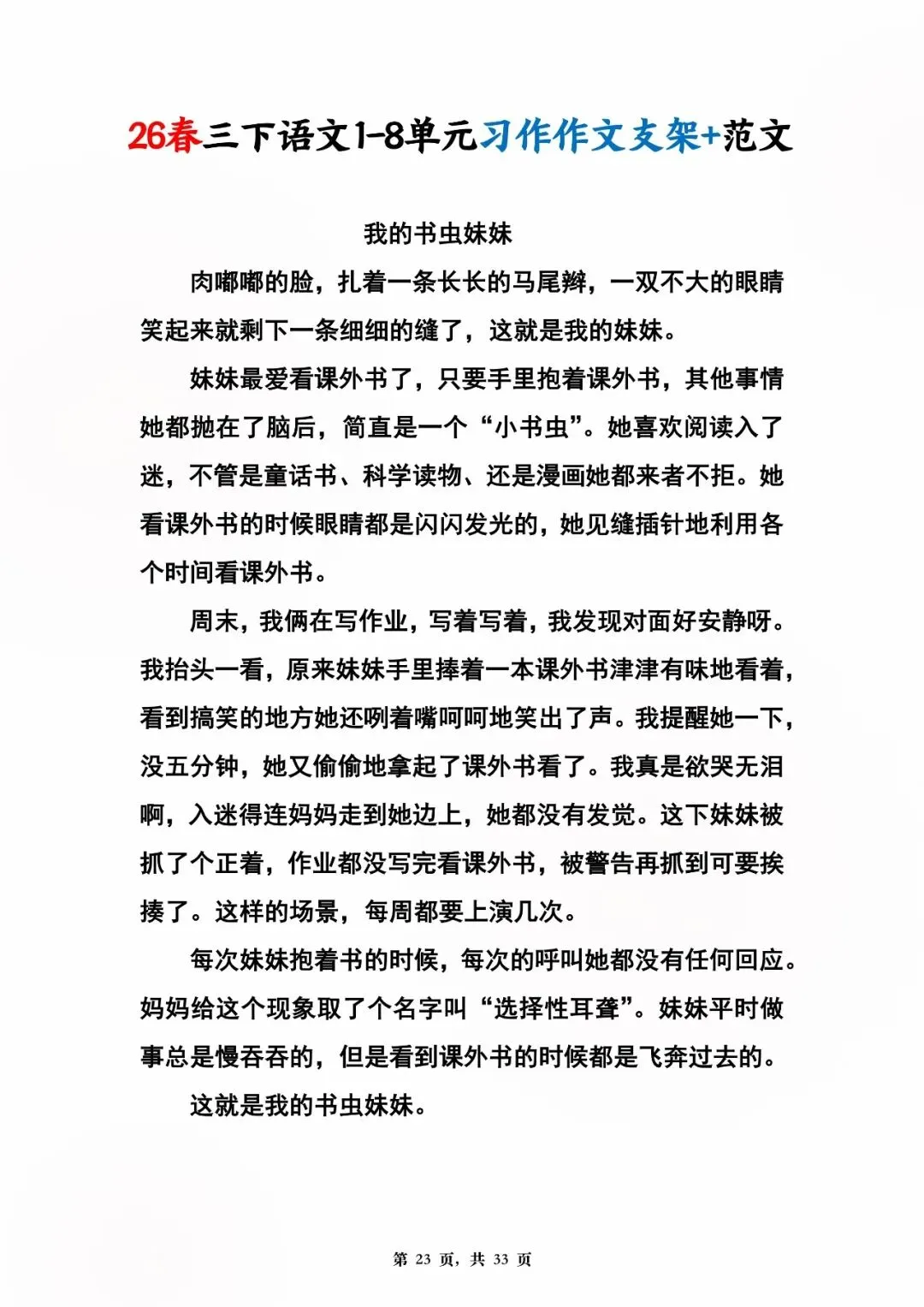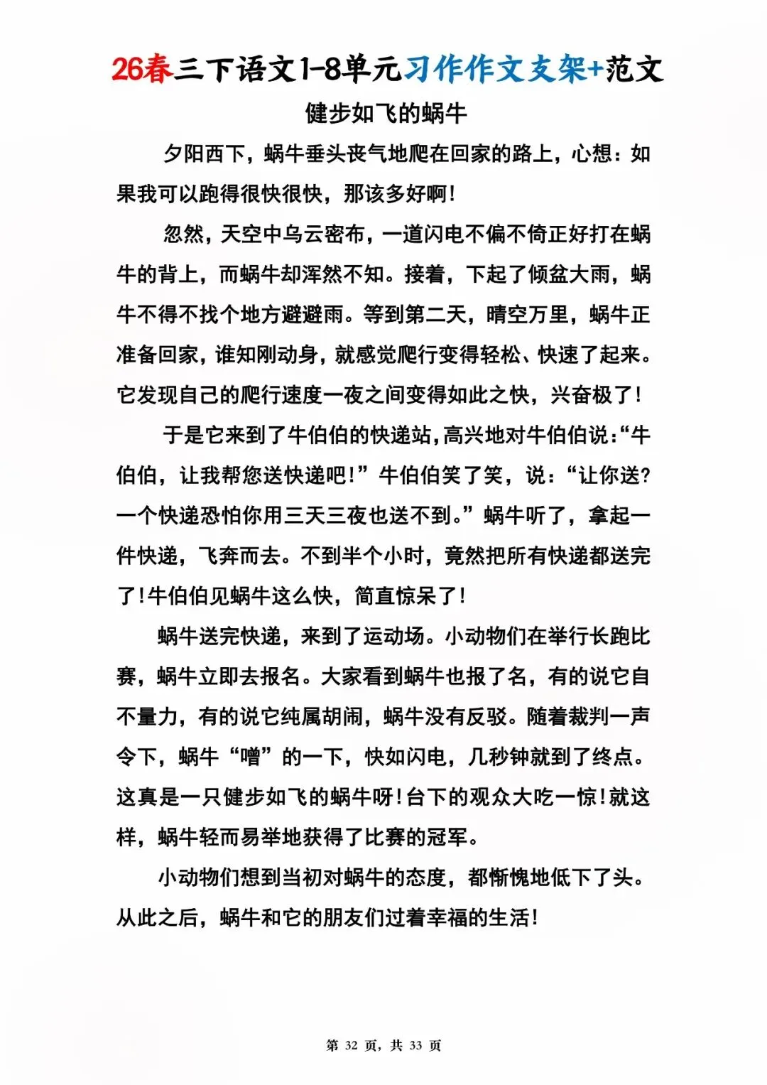 26年春版三年级下册语文1-8单元同步写作范文,电子版可打印可下载