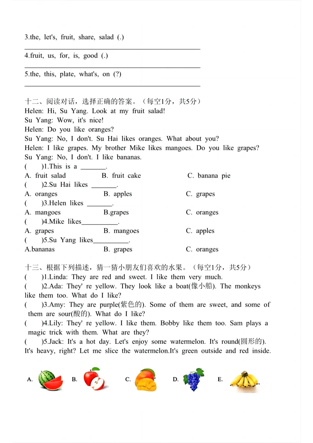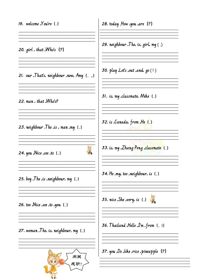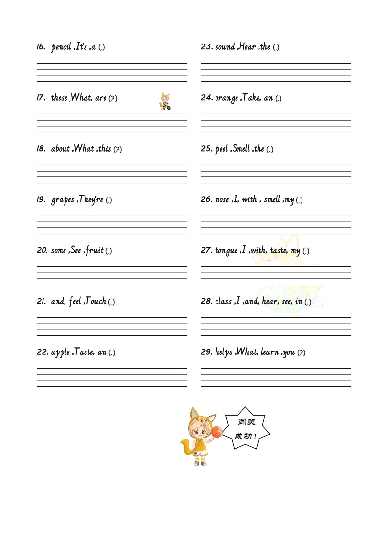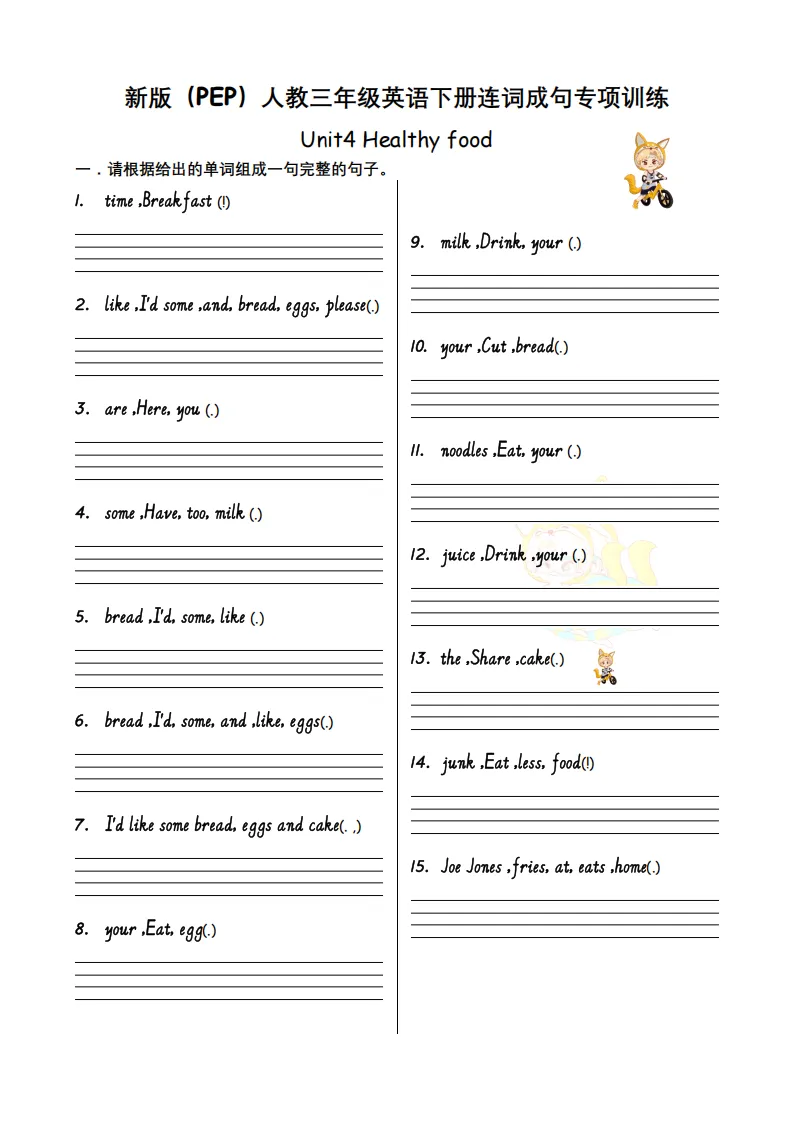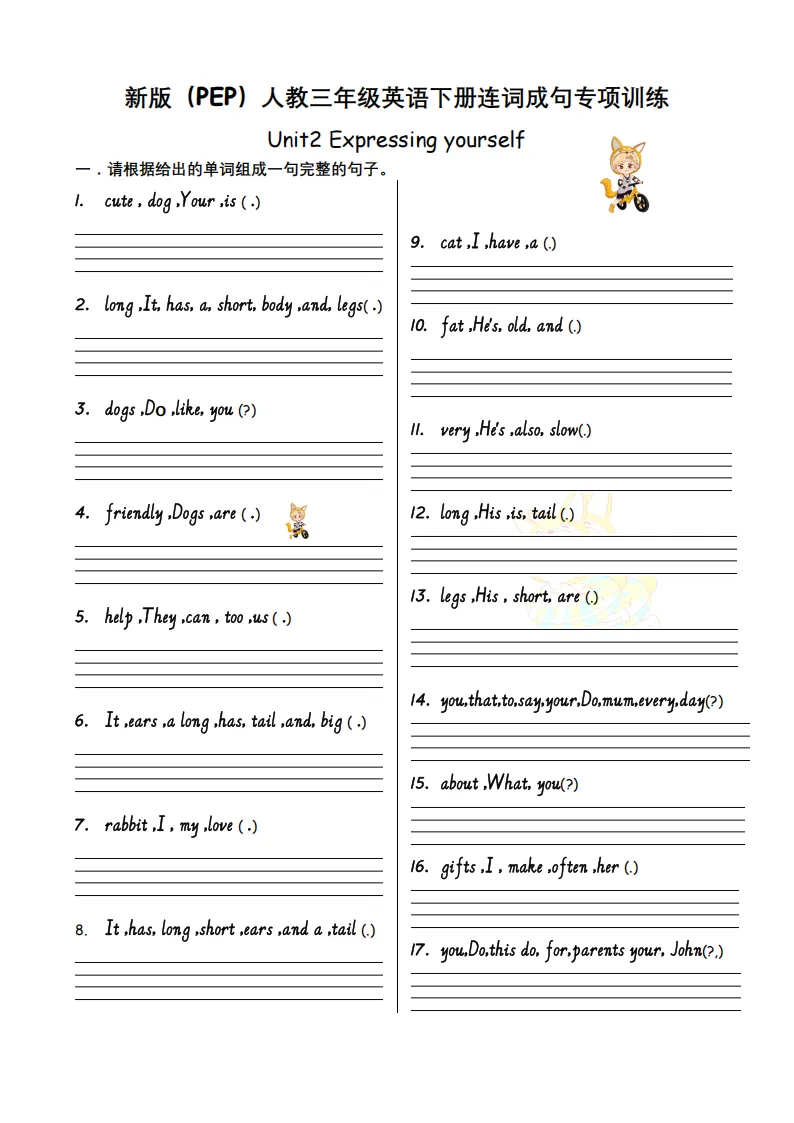 2026春三年级(下)英语人教PEP版英语U1-U6 连词成句专项训练-12页完整版可打印!