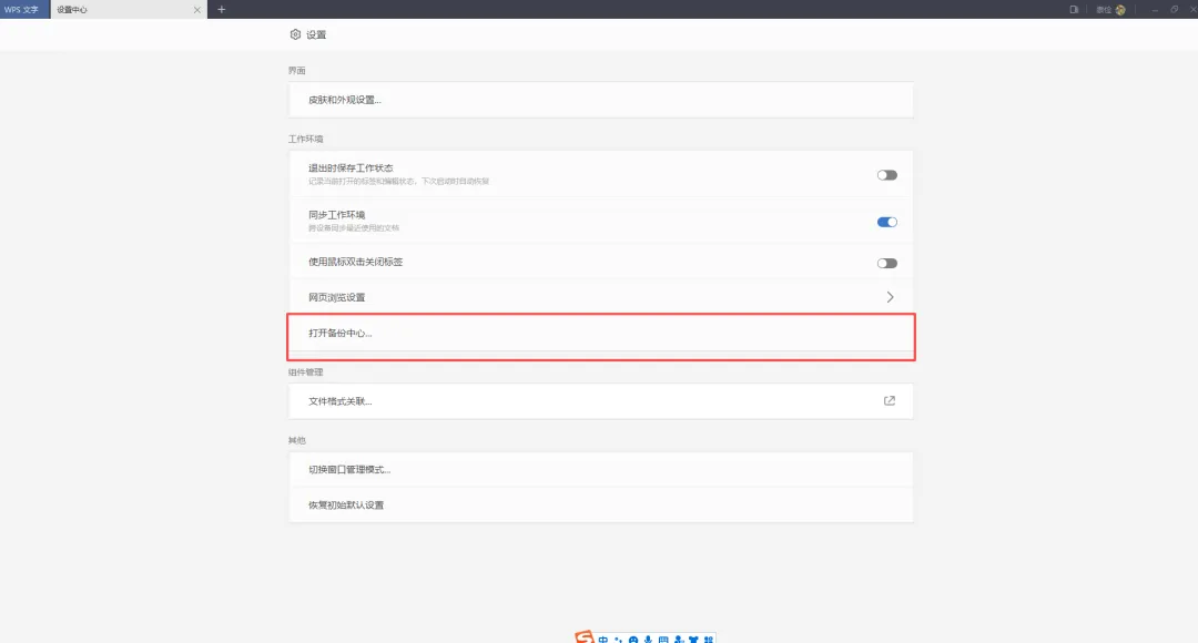 通常wps办公软件的备份设置是默认打开的只要没手动关闭过就先按照如下操作查看一下(软件版本号不一样可能导致位置或图标不一样功能都基本一致)