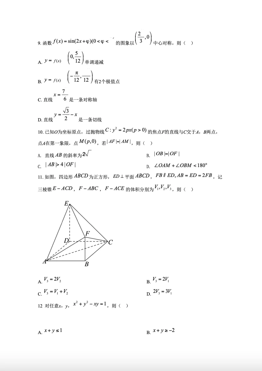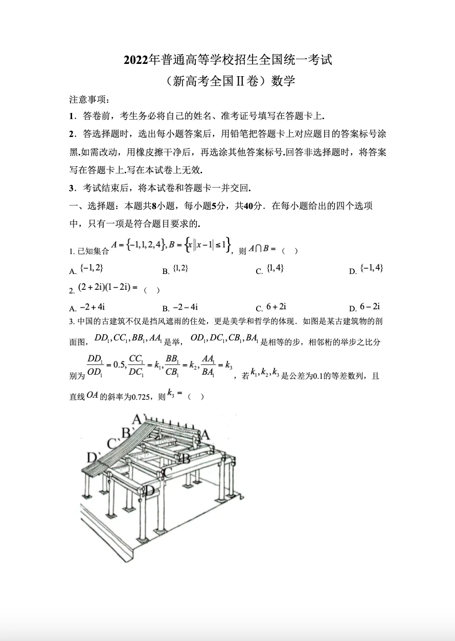 2022年新高考Ⅱ卷数学真题(免费下载)