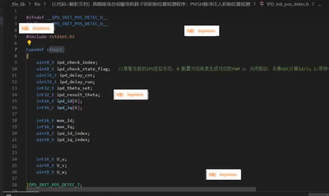 (C代码+解析文档)高精度场合伺服电机转子的初始位置检测程序:PMSM脉冲注入初始位置检测