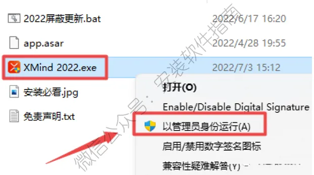 5、返回刚开始解压出来的安装包,然后以管理员身份运行如下图程序