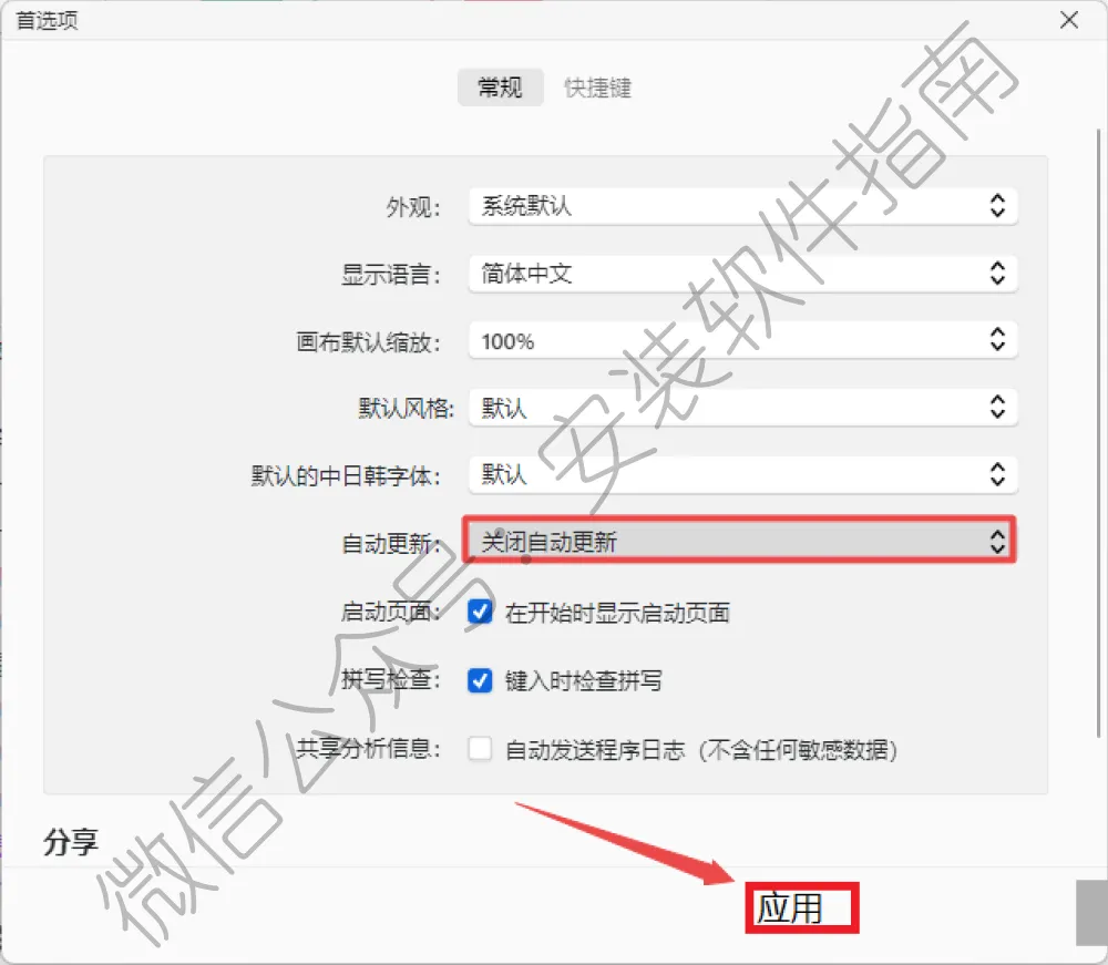 18、选择“关闭自动更新“,点击“应用“