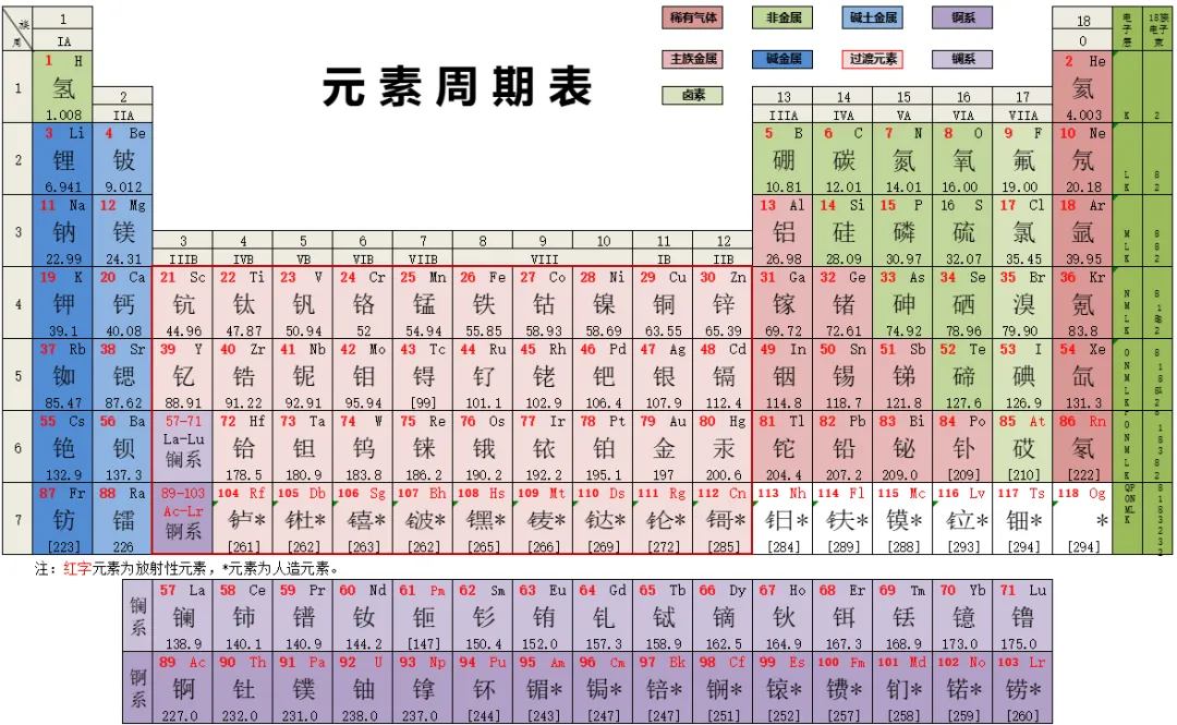 2026化学元素周期表高清图(可下载打印),元素周期表电子版可打印可编辑修改!