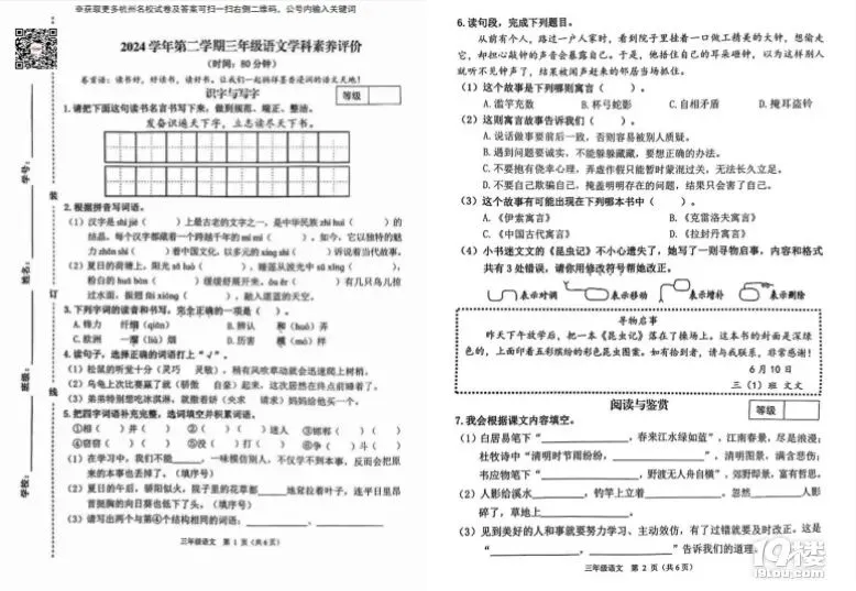 今天为大家准备的是家长上传的2025年萧山区三年级下册语文期末试卷,获取试卷完整电子版pdf免费下载及参考答案分析请点击文中的小程序!