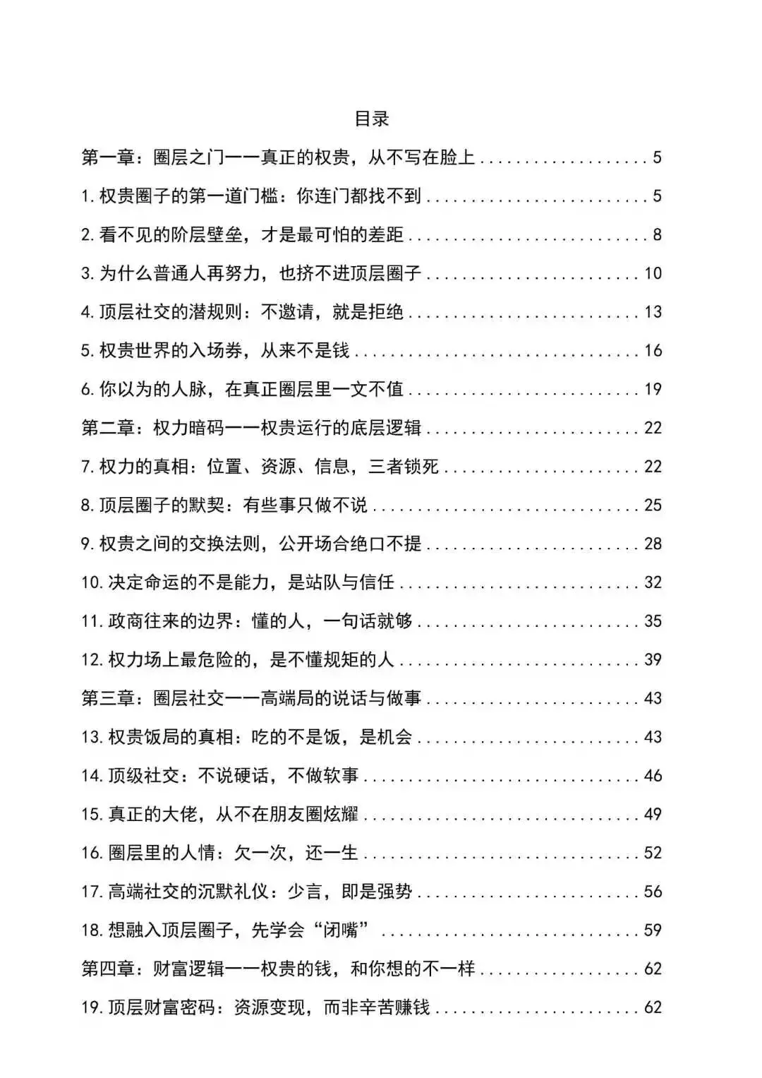 权贵圈子.pdf 《权贵圈子》撕开的不是阶层神话,而是现实真相。 与其在别人的局里当配角,不如在自己的赛道上做主角。 当你拥有不可替代的价值,所有的资源和机会,都会主动向你靠拢。 好书共读V:39559005