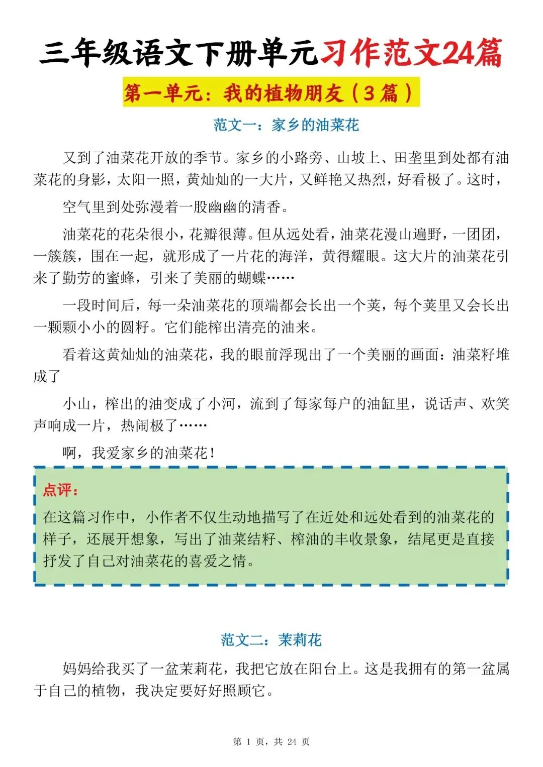 三下语文1-8单元习作范文24篇,可下载打印 文末有高清电子版领取方式 由于篇幅有限,高清完整版请下载电子版哦 领取完整电子版方式: ①:发财的小手点一点右下角“👍”和“❤️” ②:关注公众号后,在对话框中回复:004 (点击名片可直接关注)↑↑↑