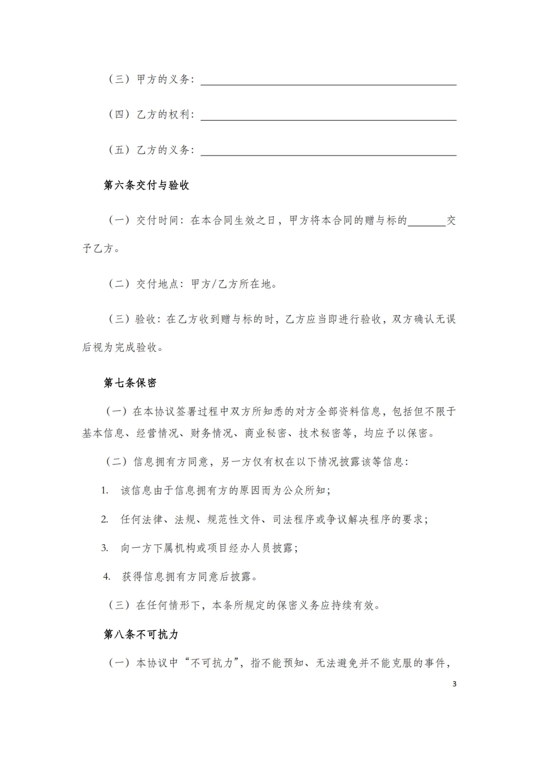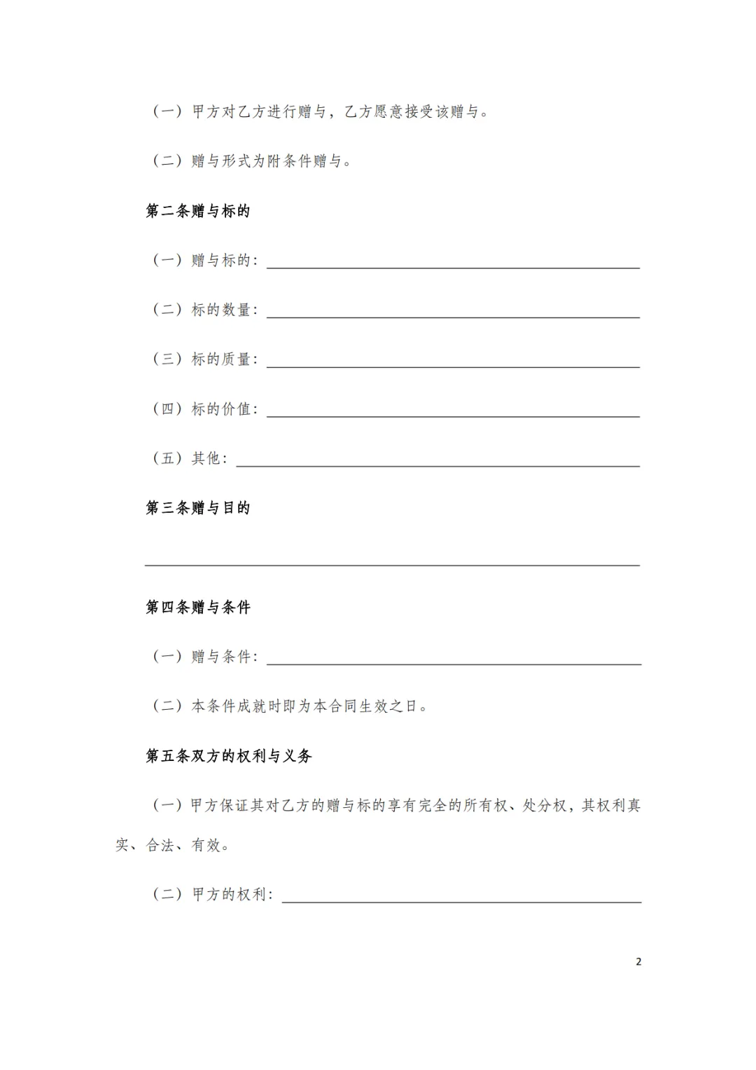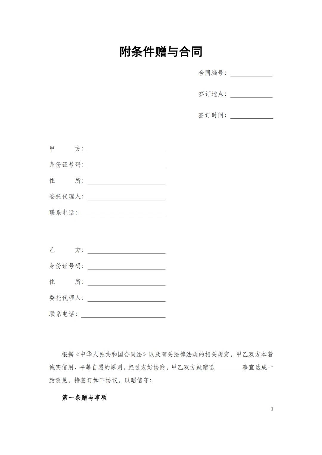 附条件赠与合同模板,WORD文档电子版,可免费下载打印