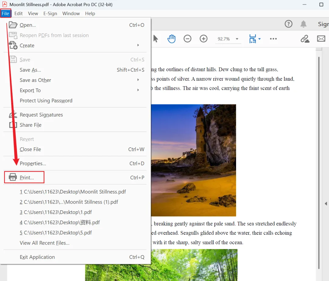 1、用「Adobe Acrobat DC」打开要处理的PDF,点击左上角「文件」-「打印」。