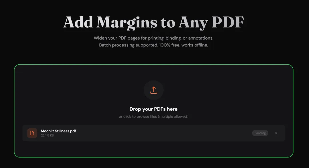 这是一款专门为PDF页面添加边距的免费工具,支持批量处理,无需注册即可使用。 -