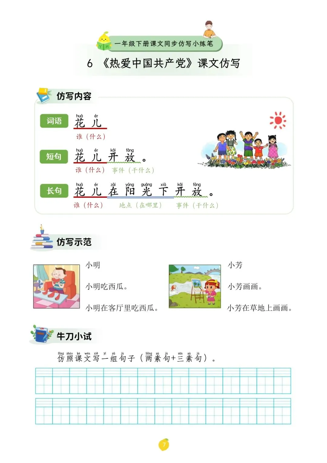 一年级下册课文仿写小练笔丨可打印