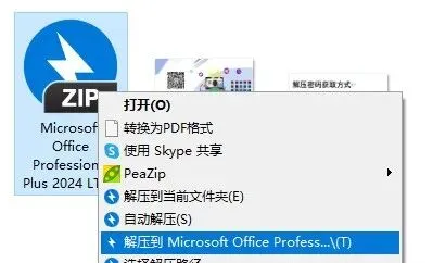 1.下载Microsoft Office Professional Plus 2024软件安装包到电脑上,右键选择【解压到Microsoft Office Professional…\】。