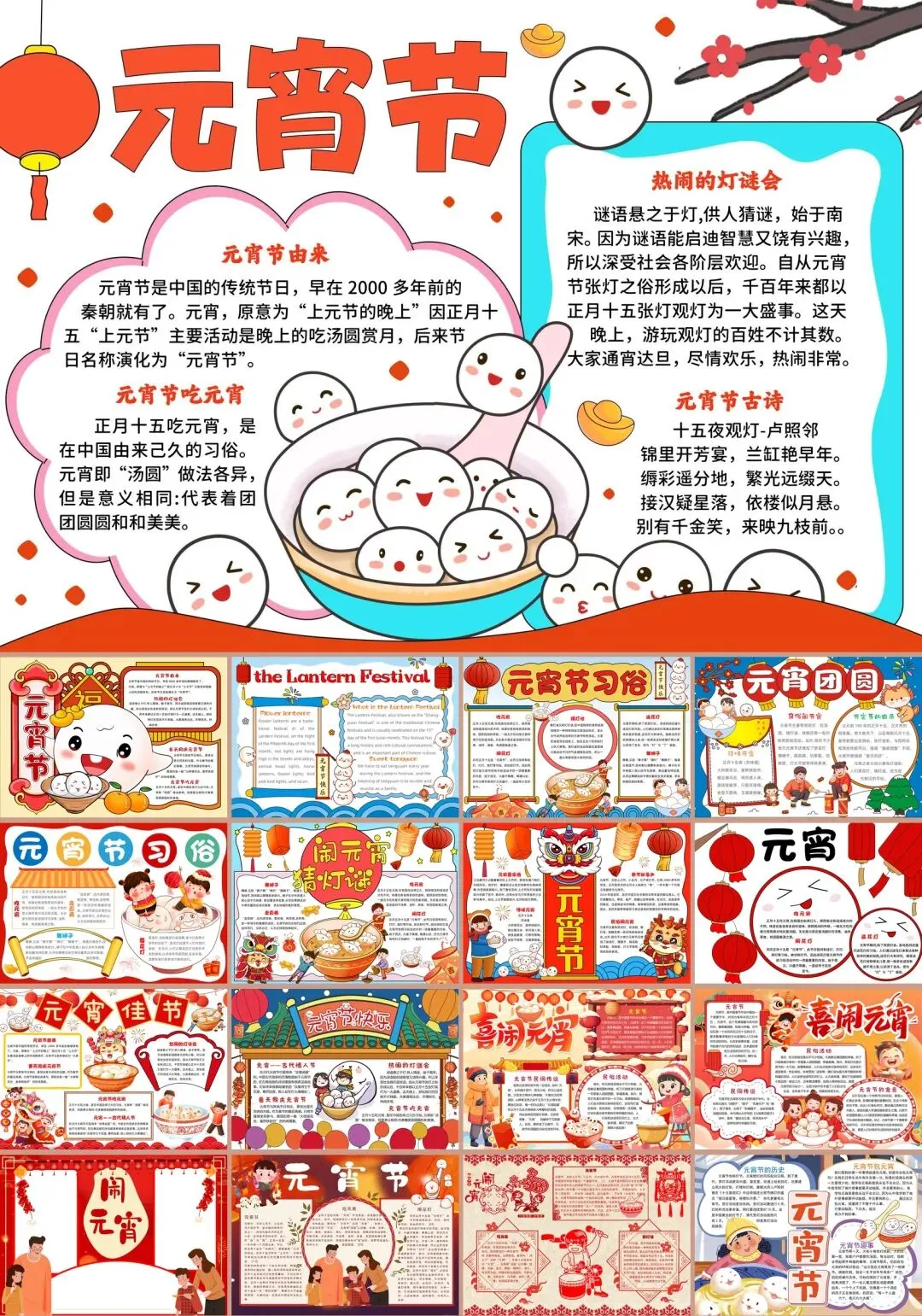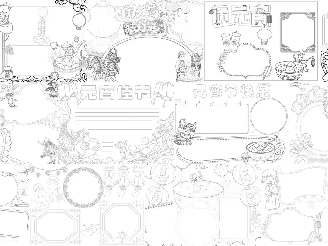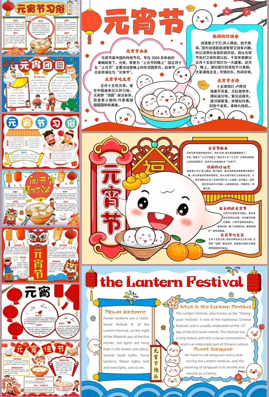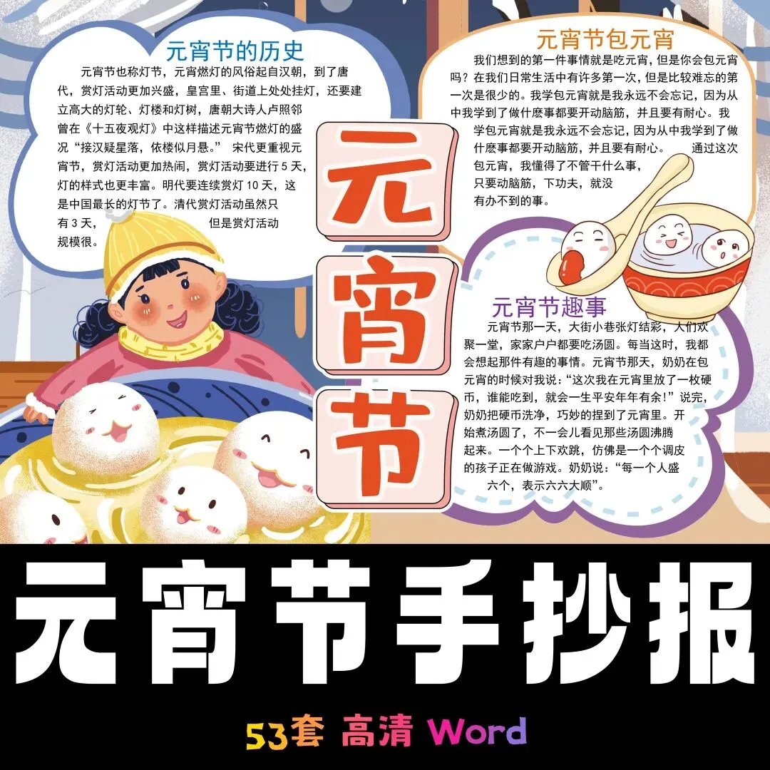 元宵节手抄报模板,53套精选设计,高清A4尺寸,适合小学生完成节日作业使用。