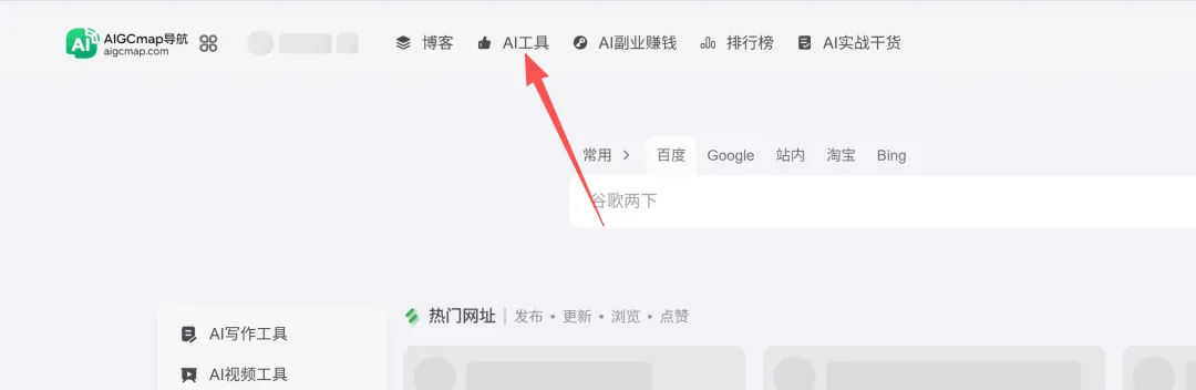 1、打开地址:https://aigcmap.com/ ,选择【AI工具】