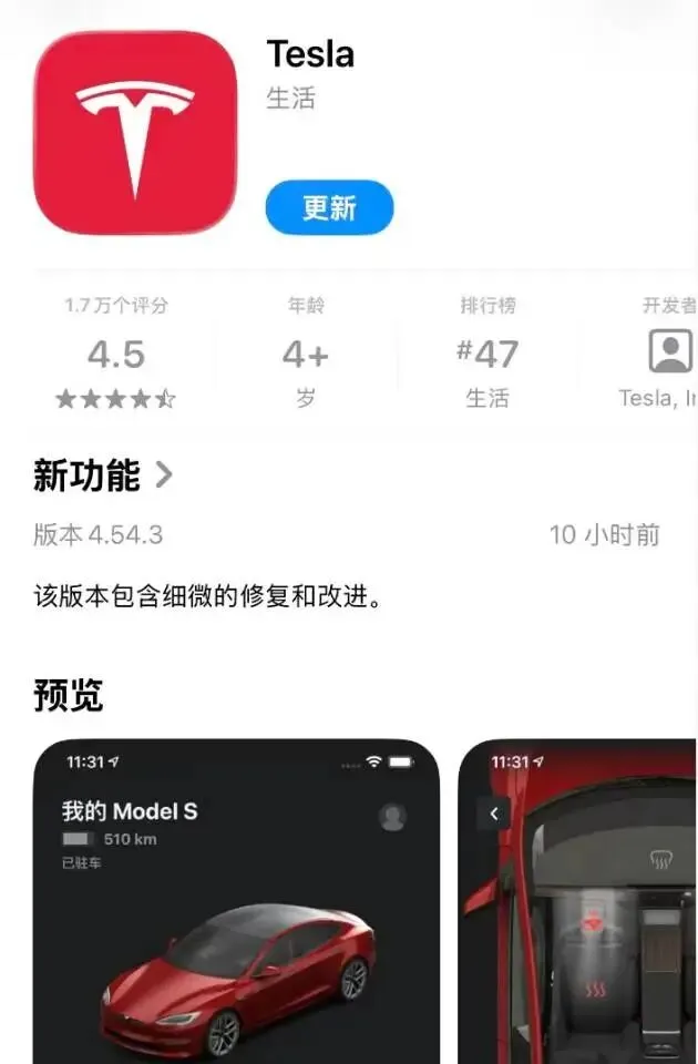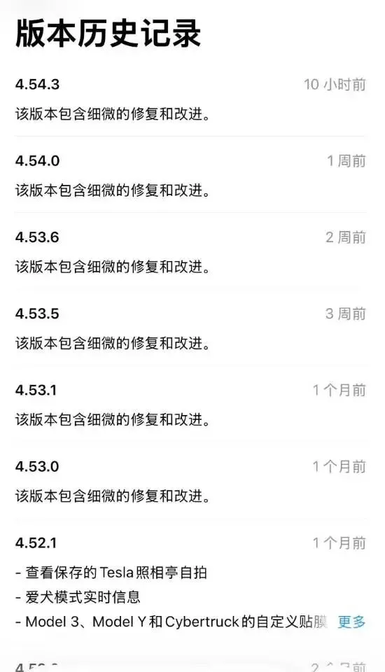10小时前,苹果App Store推送Tesla APP最新更新,版本号直接来到4.54.3。官方更新说明依旧是“细微修复与改进”,和今年从4.53.0到4.45.3的历次更新话术一致,明面上没变化,实则藏着不少干货。