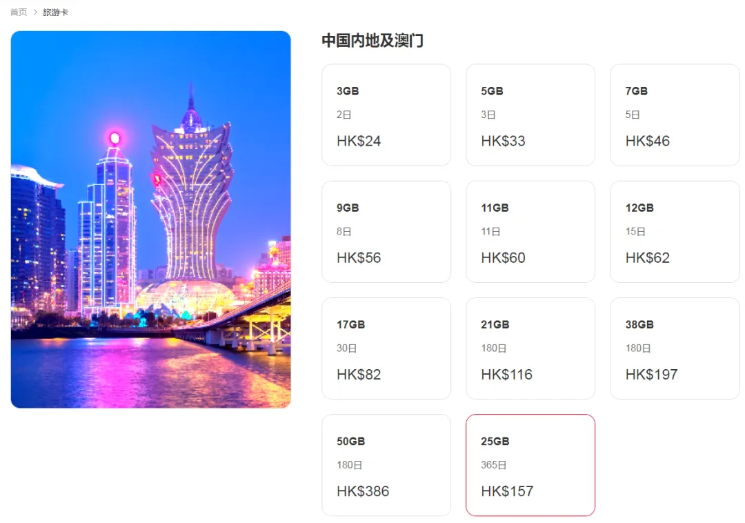 可用日数:365日。SIM卡启用后起计,至第365日香港时间23:59结束。