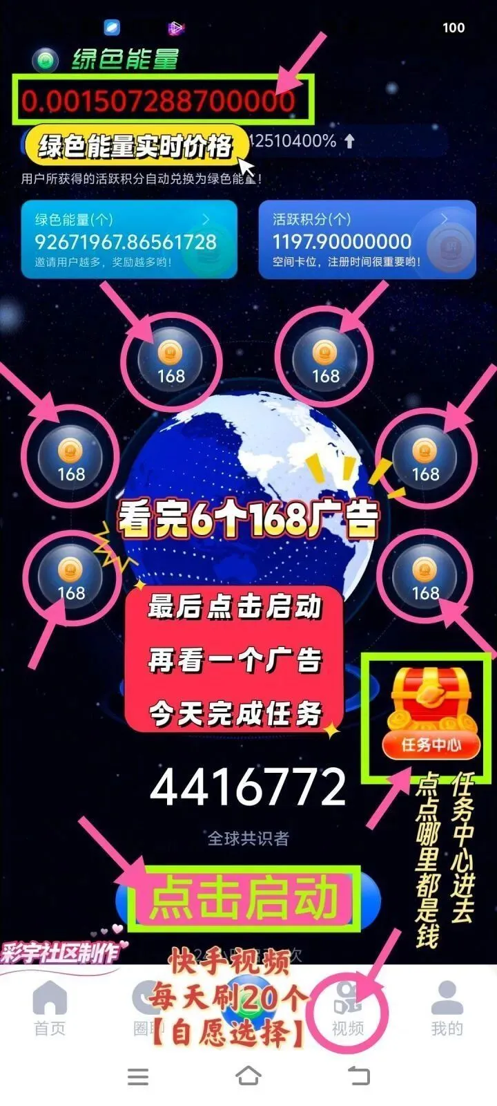另外两个APP同时都是看7个广告完成任务也是24个小时启动一次。注册好了请留言,带你进群学习赚更多的米和抢红包。