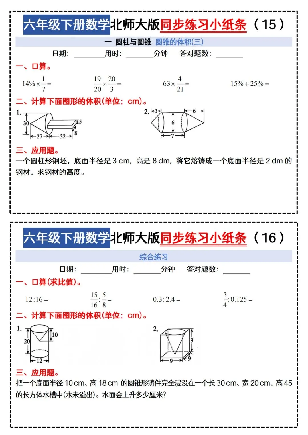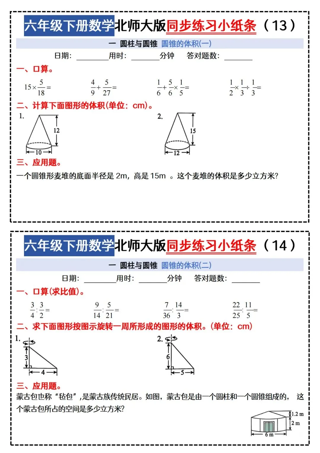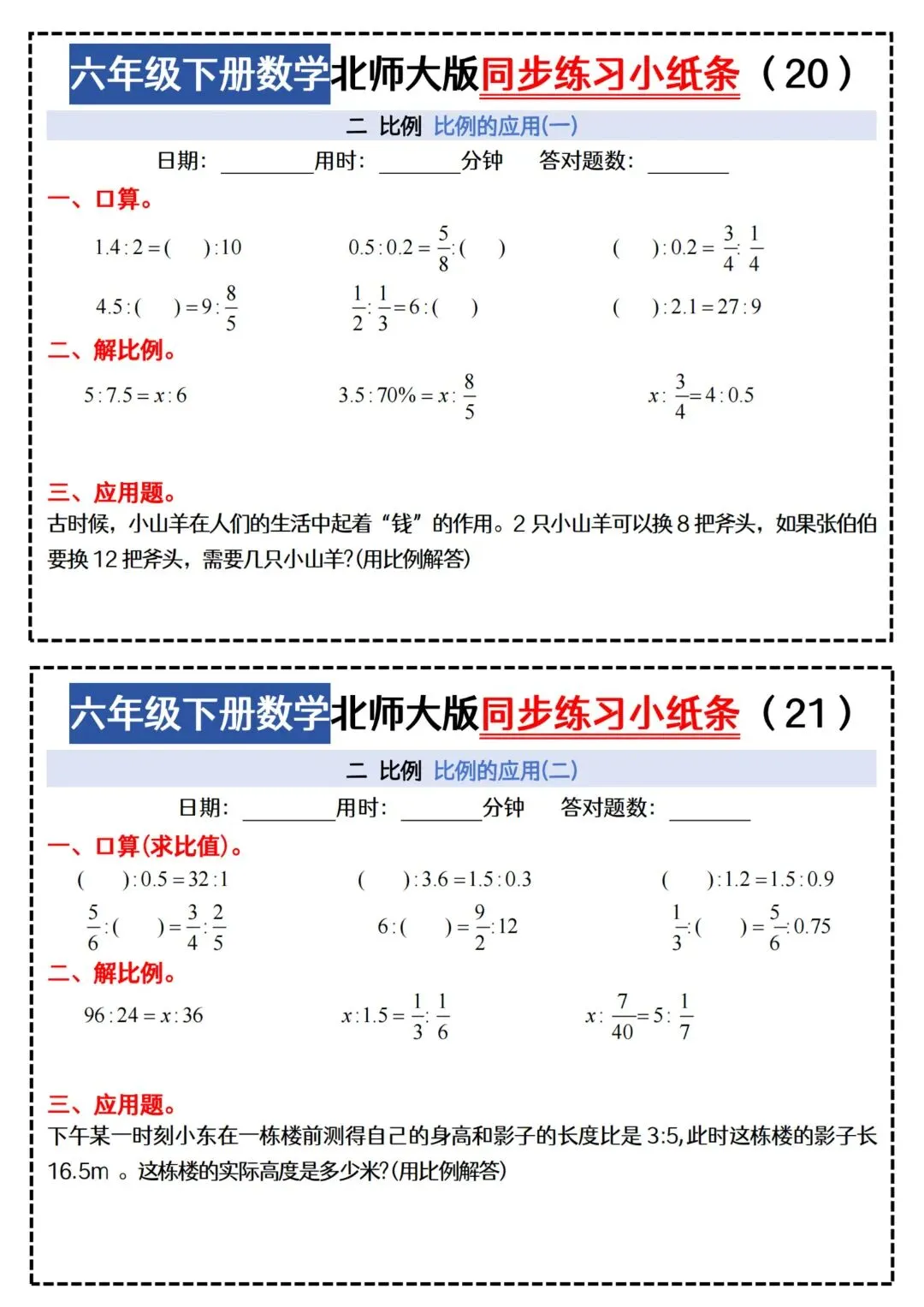 26新六年级下册数学北师大版《同步课本每日一练》共49页,完整电子版可下载可打印欢迎分享到班级群或朋友圈,方便家长打印出来助力孩子高效学习!提高学习效率。
