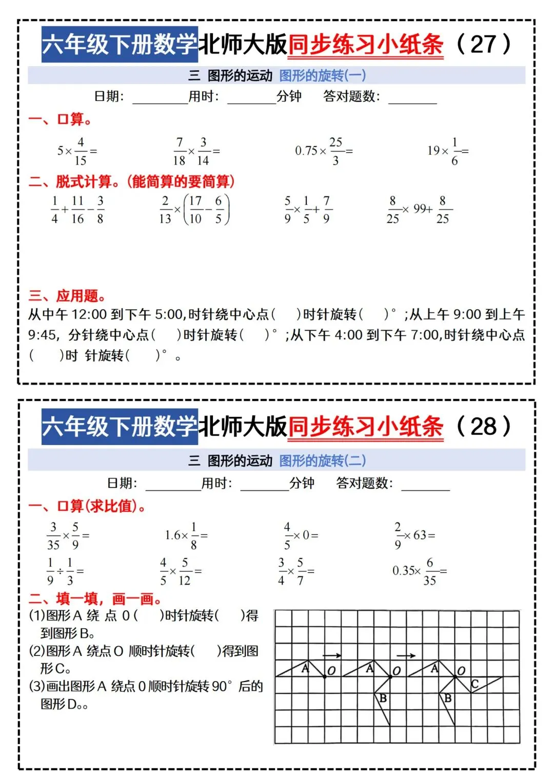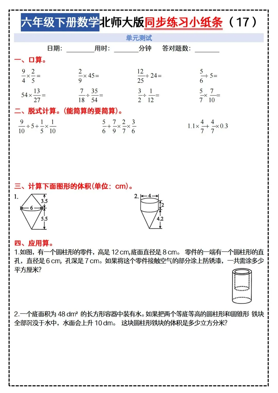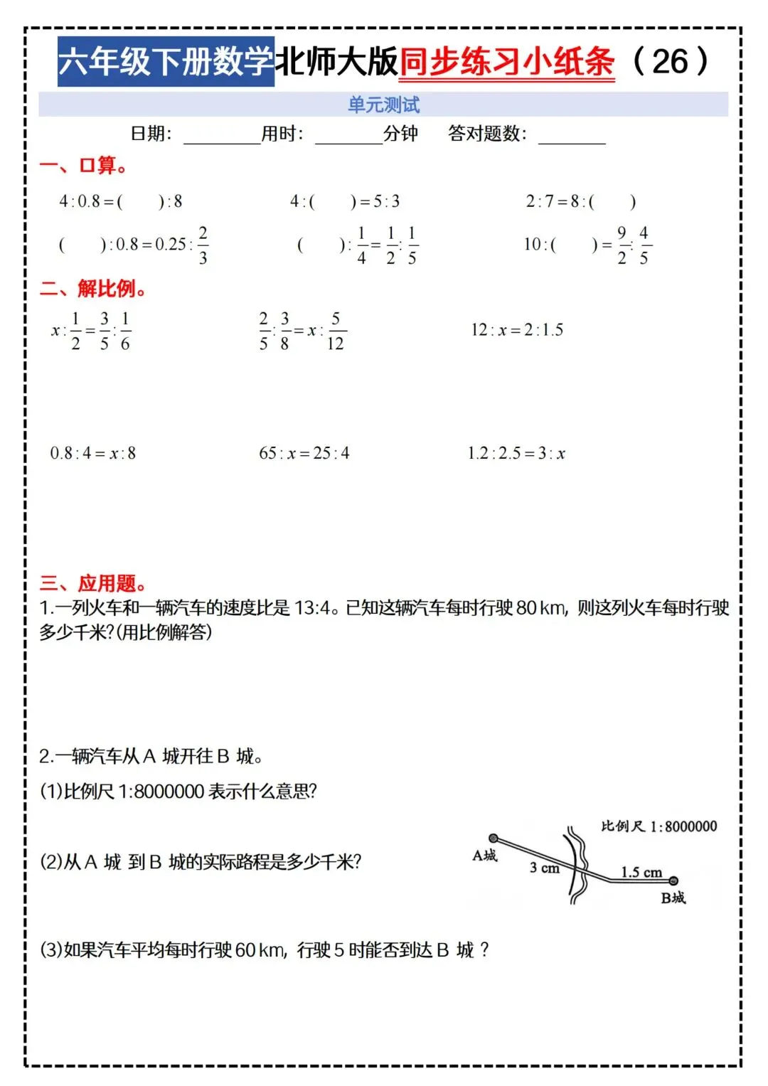 26新六年级下册数学北师大版《同步课本每日一练》共49页,完整电子版可下载可打印欢迎分享到班级群或朋友圈,方便家长打印出来助力孩子高效学习!提高学习效率。