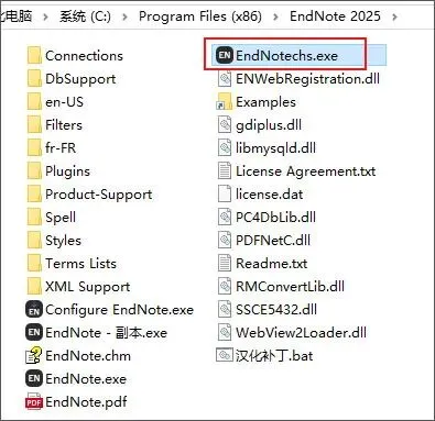 软件安装目录【C:\Program Files (x86)\EndNote 2025\】,如果有更换安装位置,也可以在桌面上鼠标右键选择“打开文件目录”,找到对应安装的文件目录即可