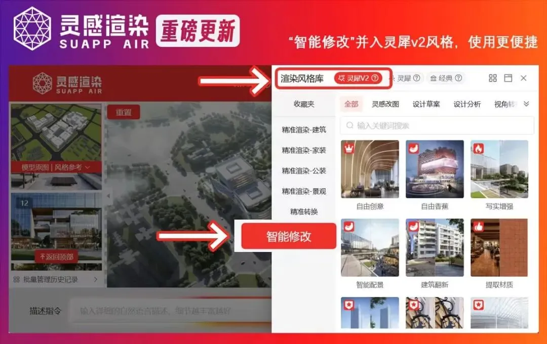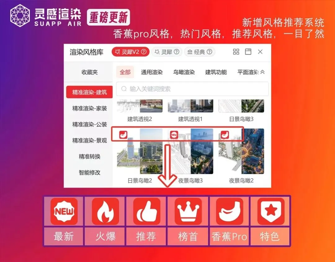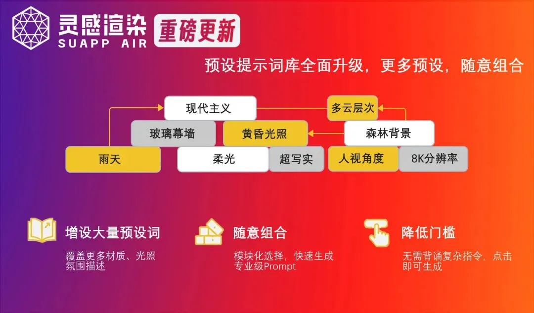 SUAPP灵感渲染「史诗级」更新,更快、更强、更精准、更简单、风格和预设词更多: