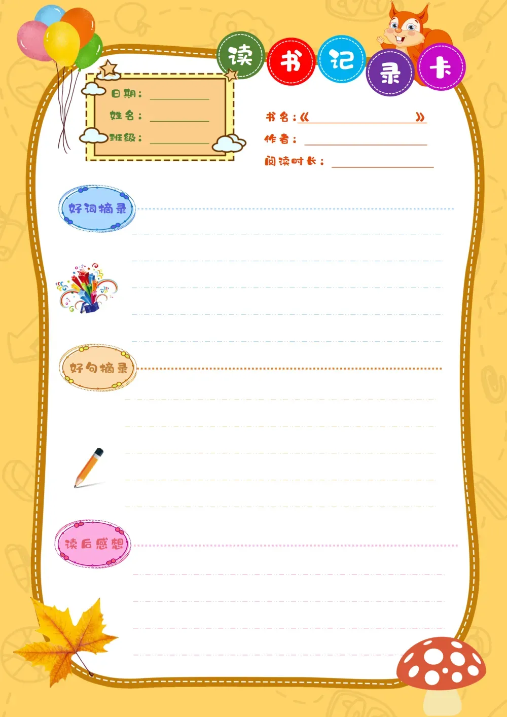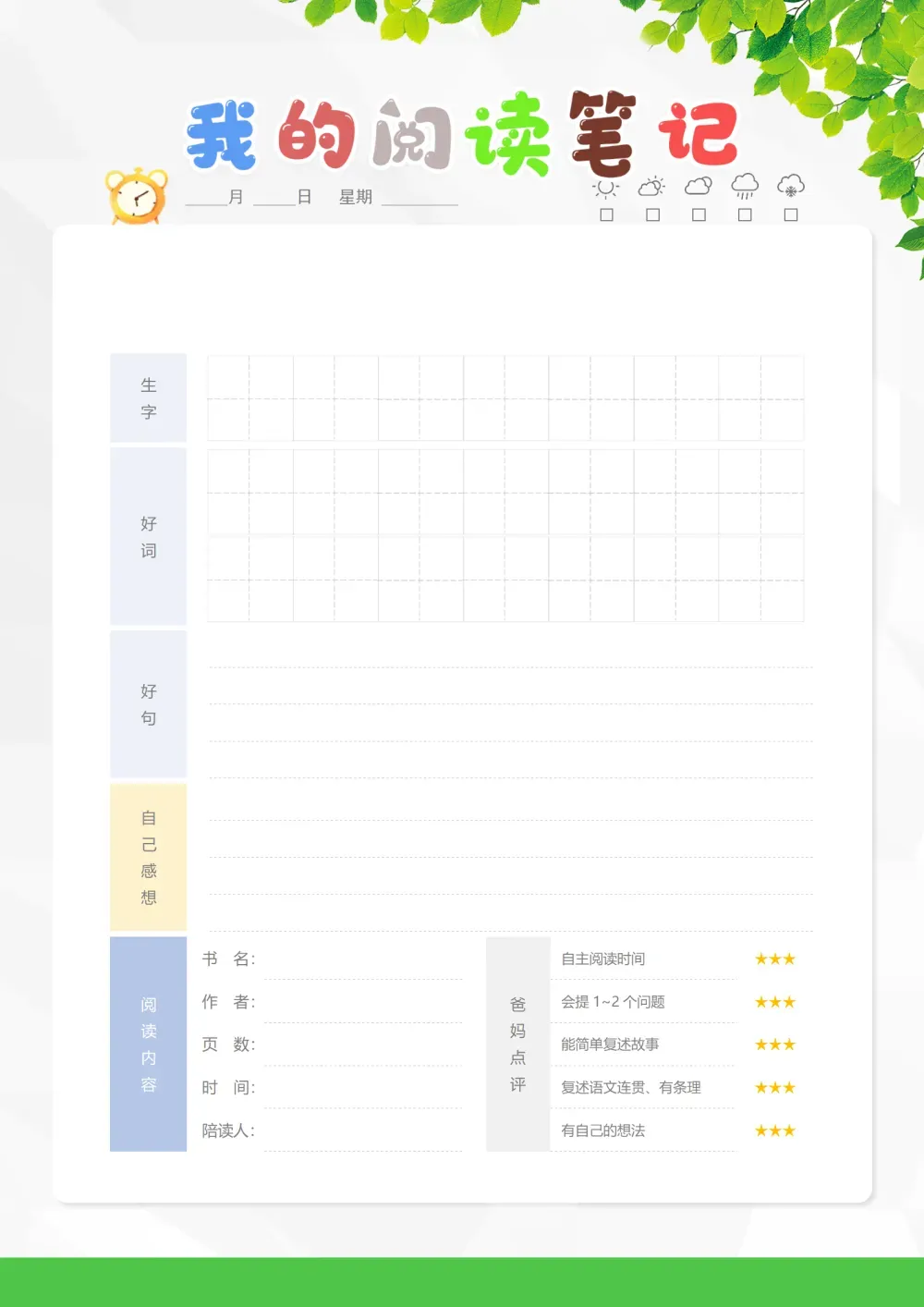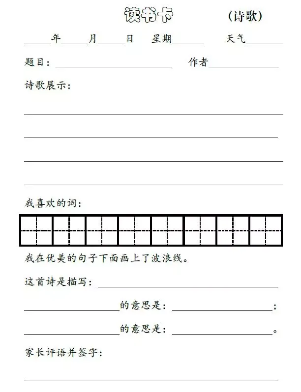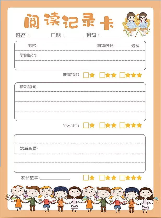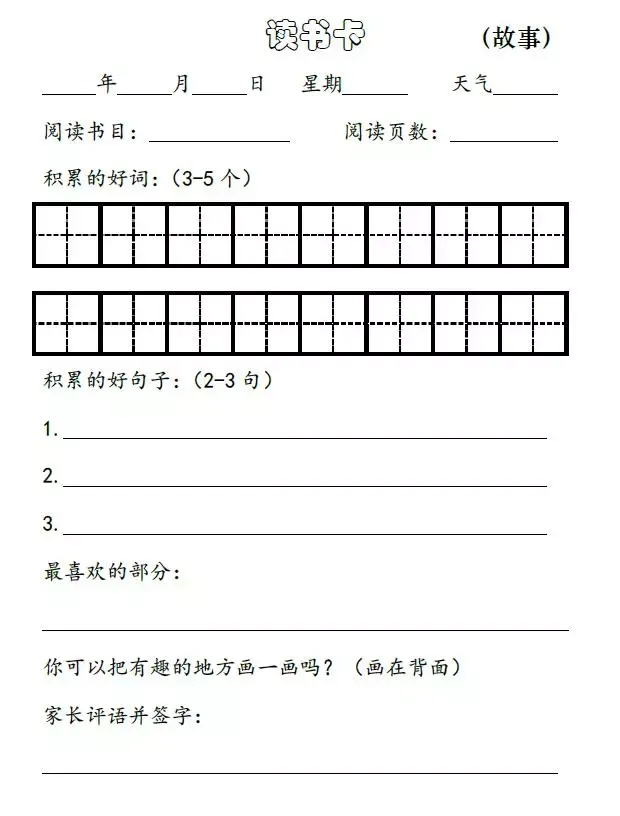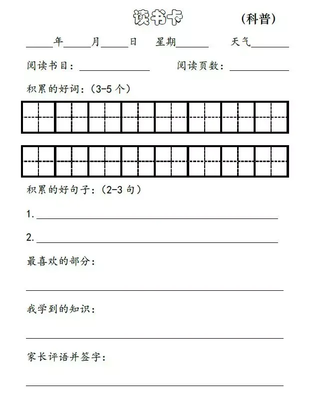 小学生读书笔记阅读卡(可打印)