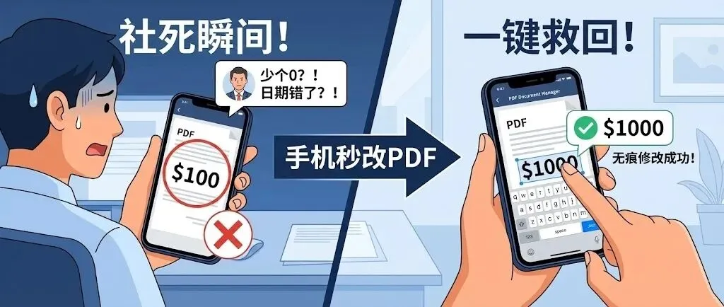 前一秒客户发来一个PDF合同需要紧急修改金额;
