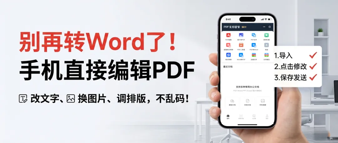 ① 核心能力一:无痕修改PDF,告别“转Word”的排版灾难