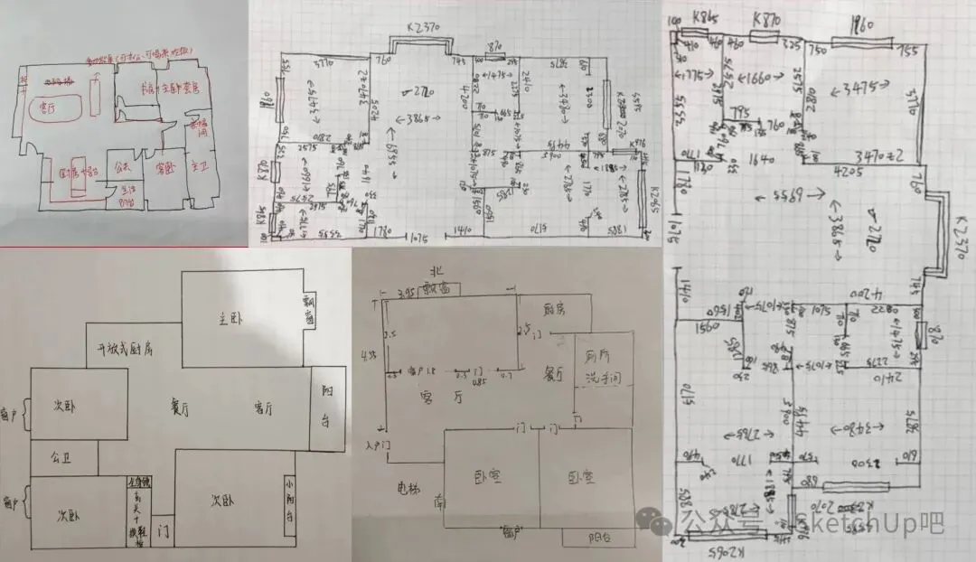 在现场,我只需要在纸上或者 iPad 上画一个大概的户型轮廓,标上几个关键数据。不需要画得横平竖直,哪怕线条歪歪扭扭也无所谓。
