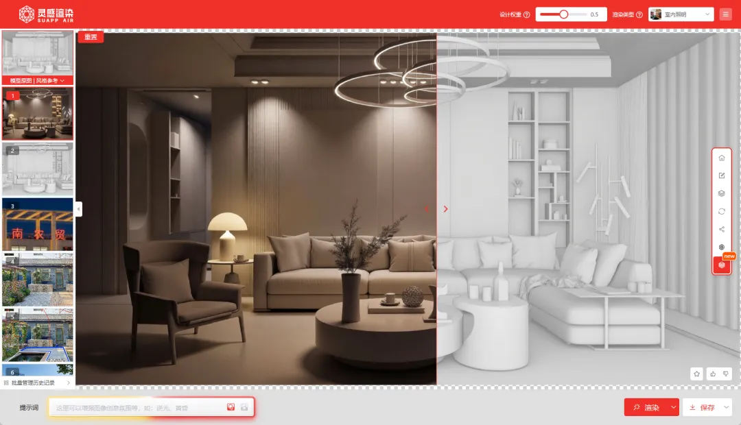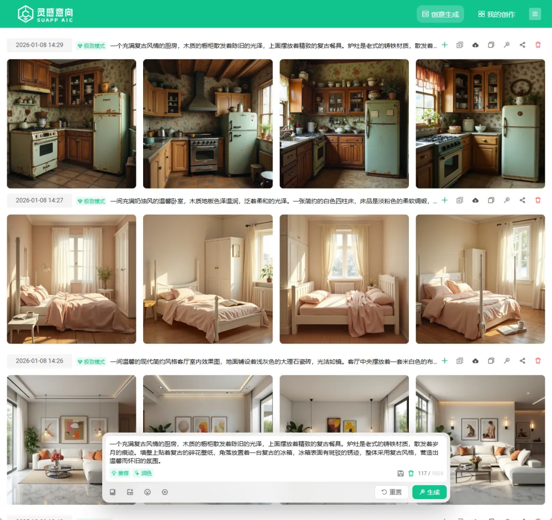 遇到业主描述不清的需求,直接用“灵感意象”把他的语言描述转化成具体的设计意向图,所见即所得。