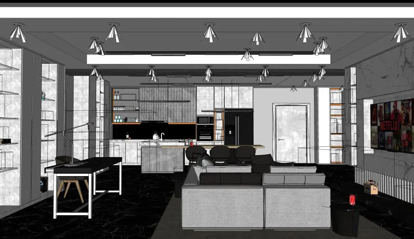 传统痛点:方案确定后,进入 SU 建模阶段。这曾是体力和耐心消耗最大的环节。为了看一个异形吊顶效果,或者为了找一个特定的沙发模型,我们可能要耗费一下午。