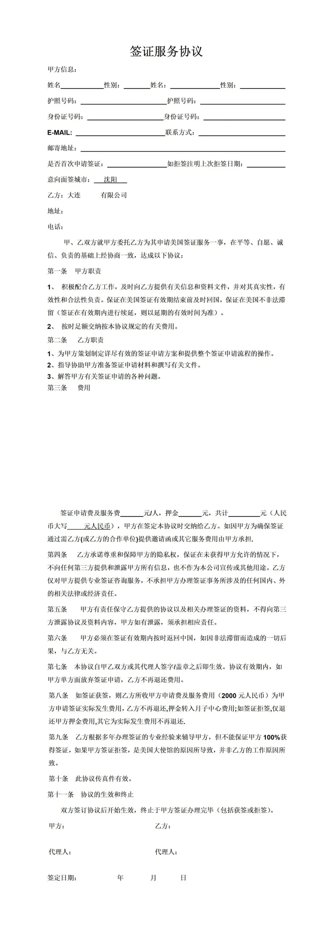 本文分享:15份出国协议