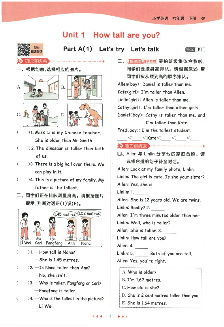 《53天天练》26春-人教PEP版英语小学3/5/6年级上下册/电子版可下载