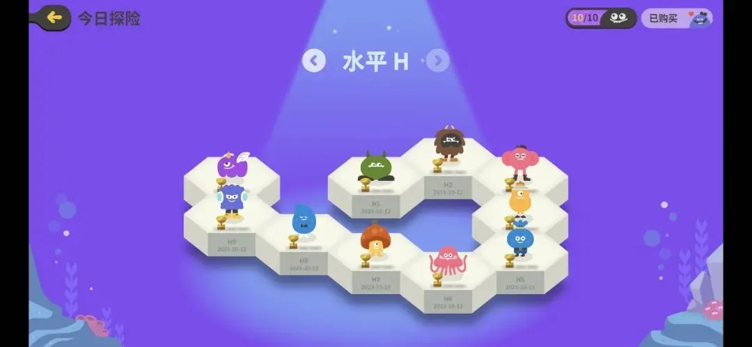 每个专题也是一个地图的形式,里边包含好几个关卡,全部完成后即可拿到宝箱里的蓝色星星作为奖励,非常有成就感。
