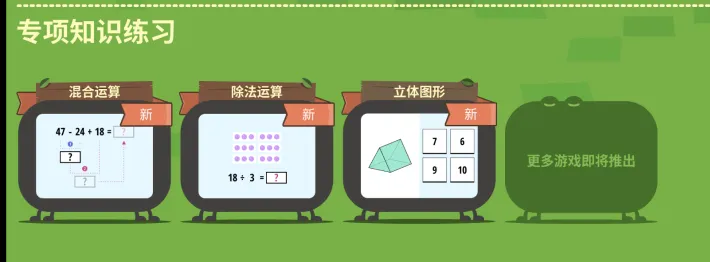 融入到各种游戏关卡里,通过场景式的互动引导,让孩子反复锤炼吃透。