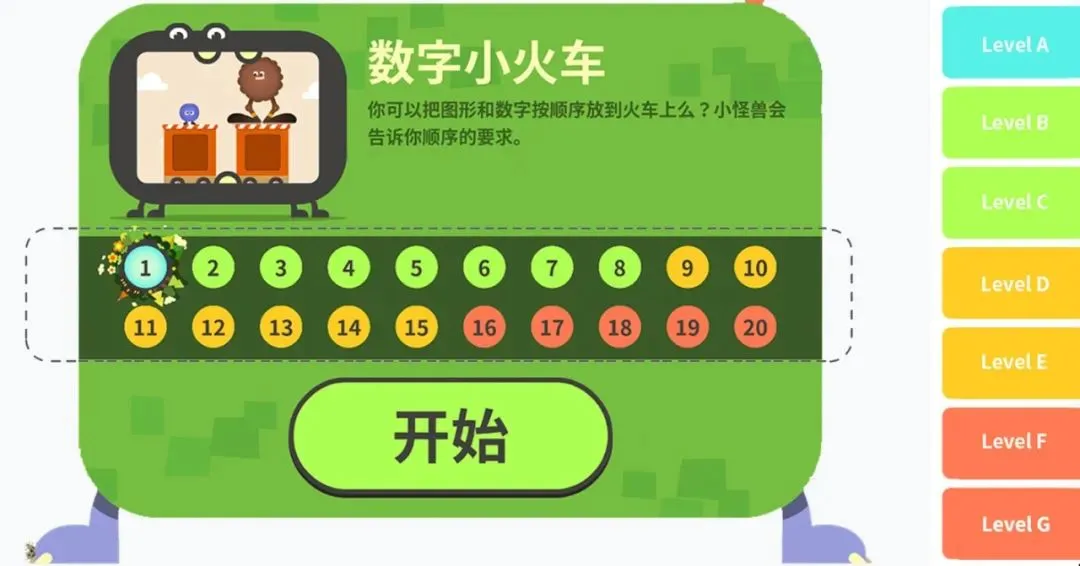小朋友可以从第一关开始玩,也可以选择跟自己等级相对应的关卡玩。